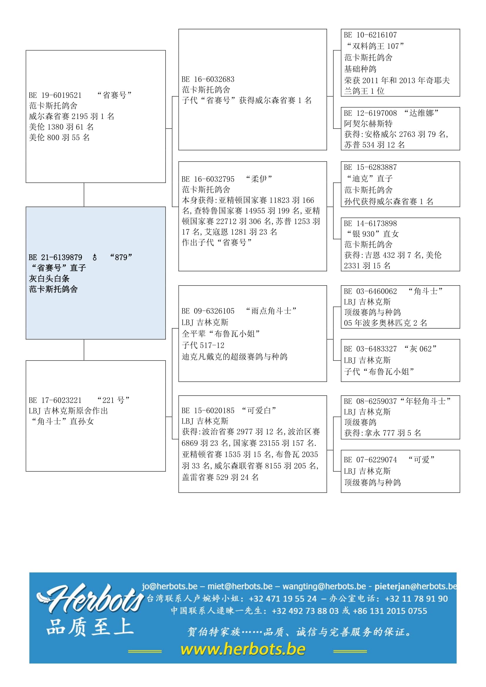 出自 “雨点角斗士” (全平辈“布鲁瓦小姐”) x 顶级雌鸽“可爱白”