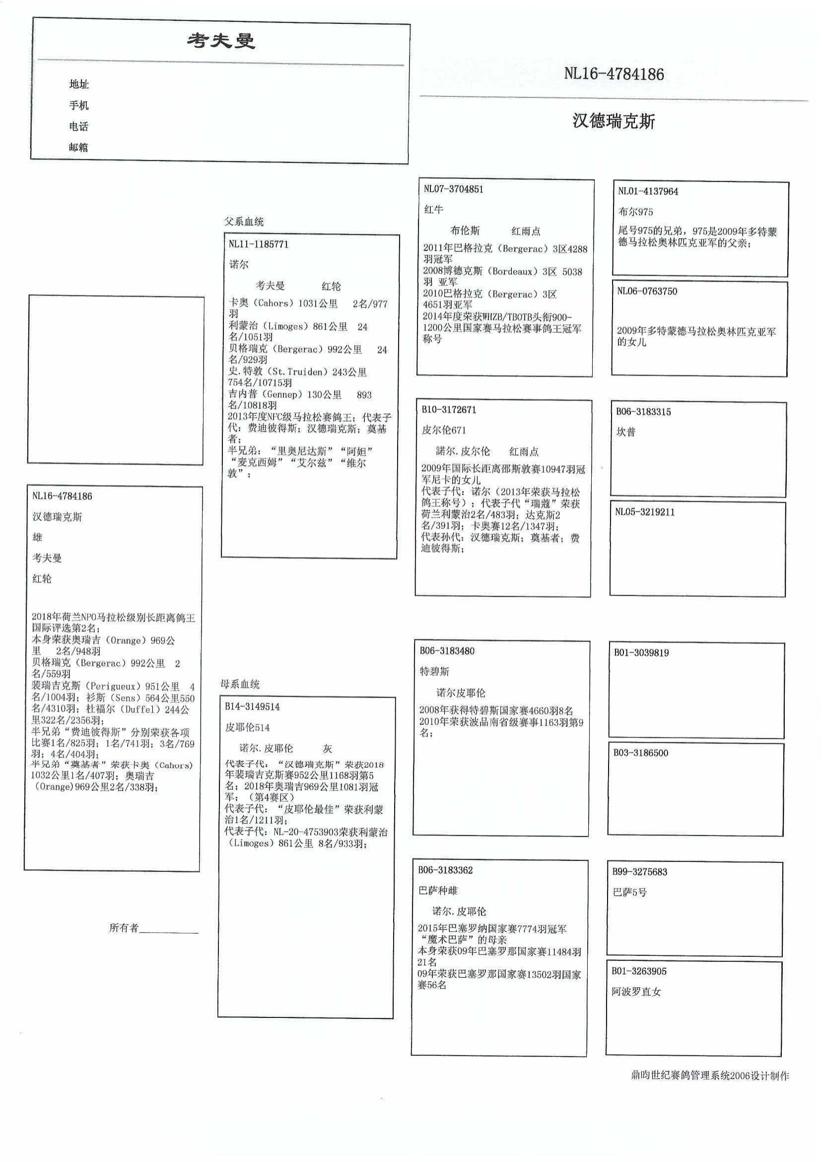出自: “塔贝斯” (8名 全国塔贝斯 4,660羽 – 9名 省级 波品纳 1,163羽) x “巴塞罗那 雌” (赢得 21名 全国巴塞罗那 11,484羽 – 56名全国巴塞罗那13,502羽)