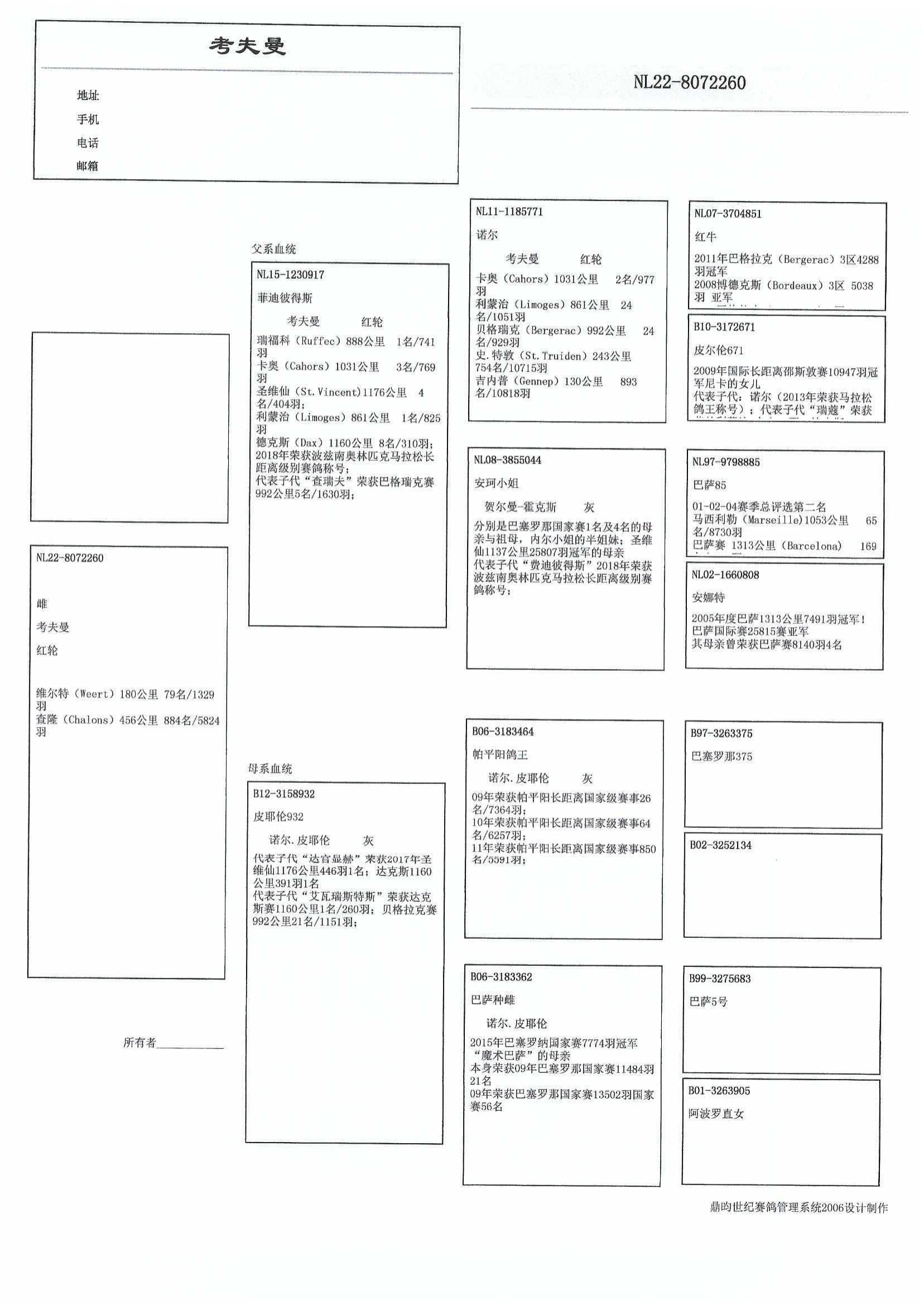 “波品纳鸽王” B06-3183464 赢得: