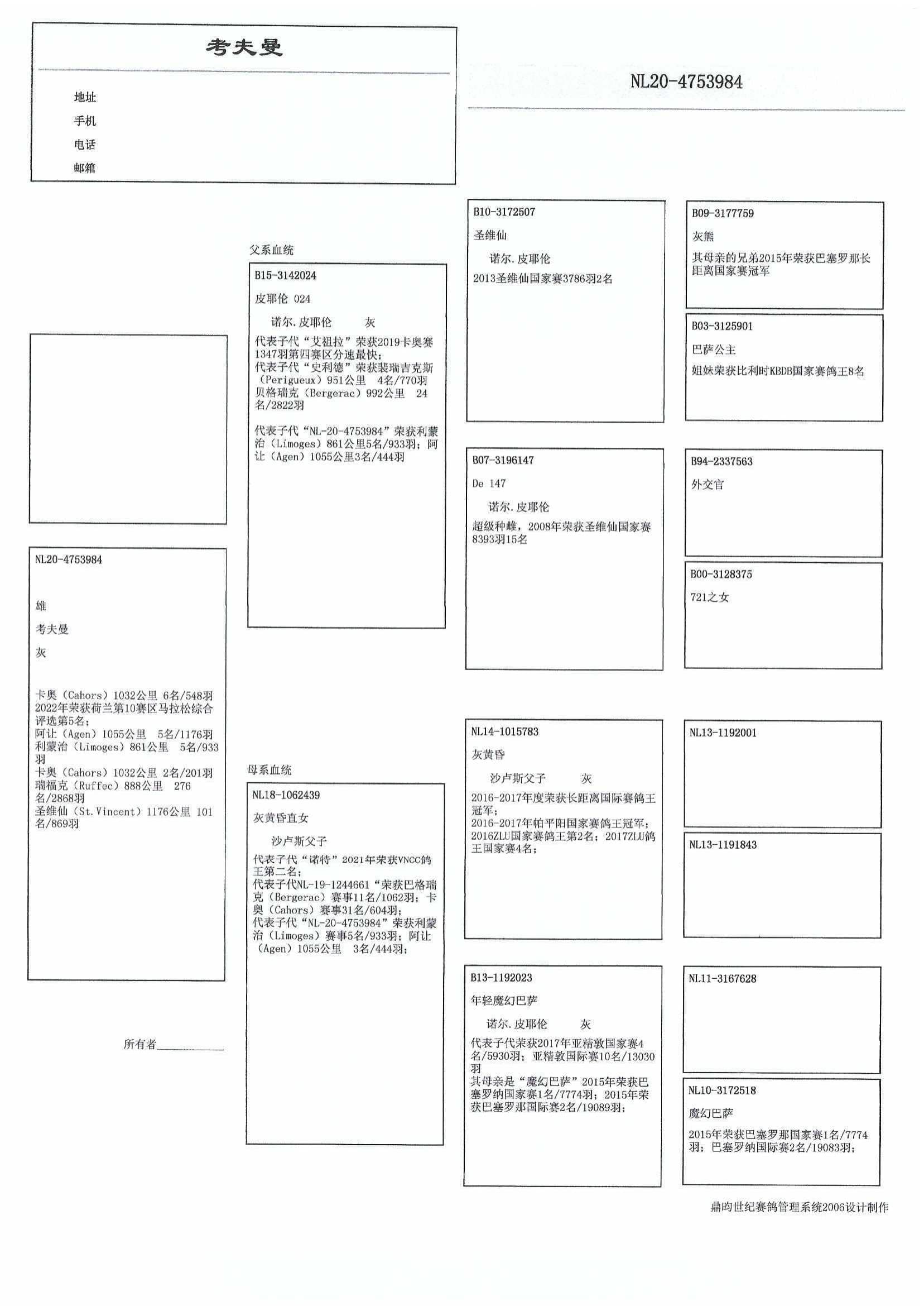 2名全国鸽王荷兰南林堡联合会 ’16 –4名