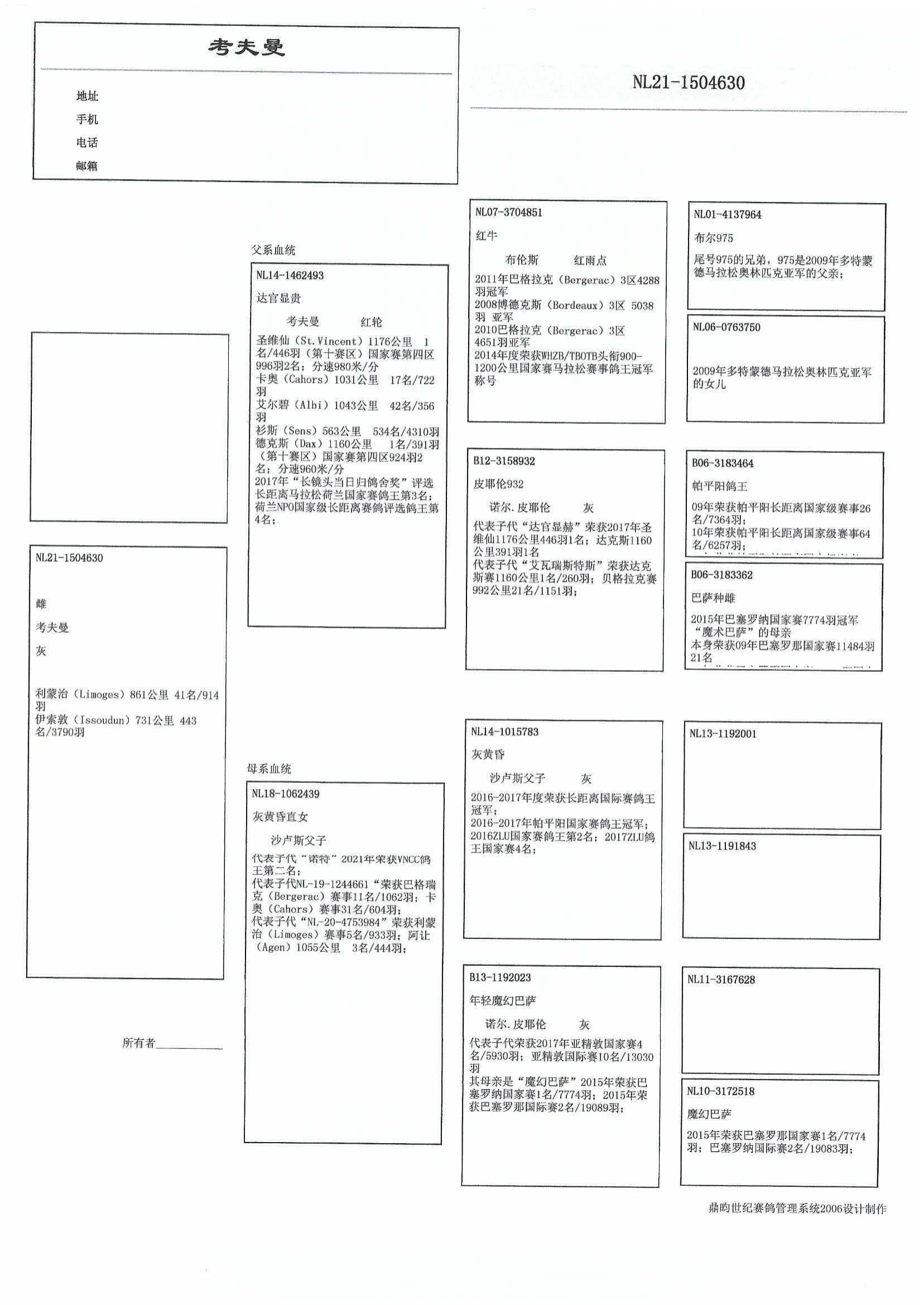 4名全国鸽王荷兰南林堡联合会 ‘17