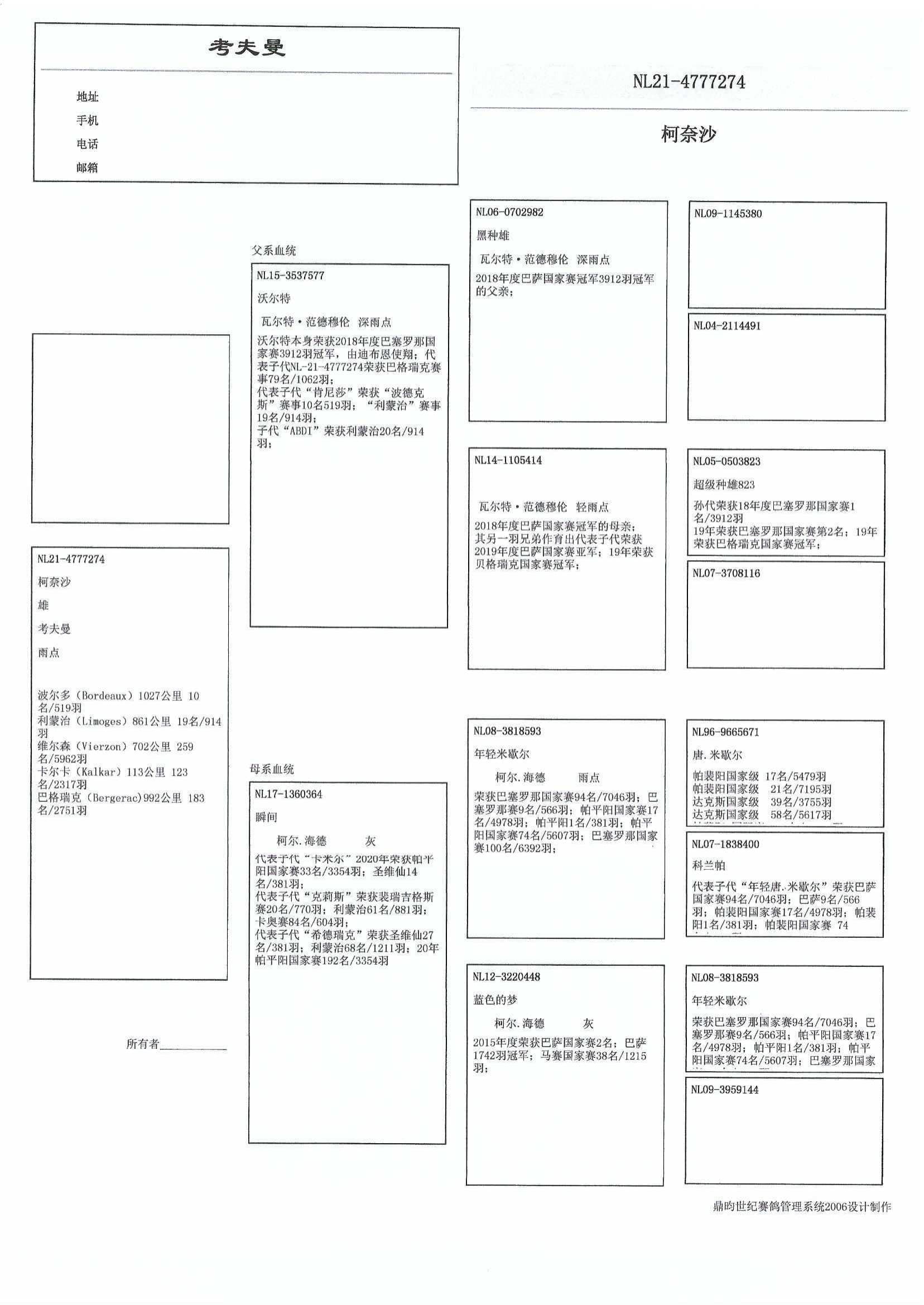 “青年唐.米歇尔 ” (NL08-3818593) x “杰西的孙女” (赢得 13名 全国贝格瑞克 4,096羽)