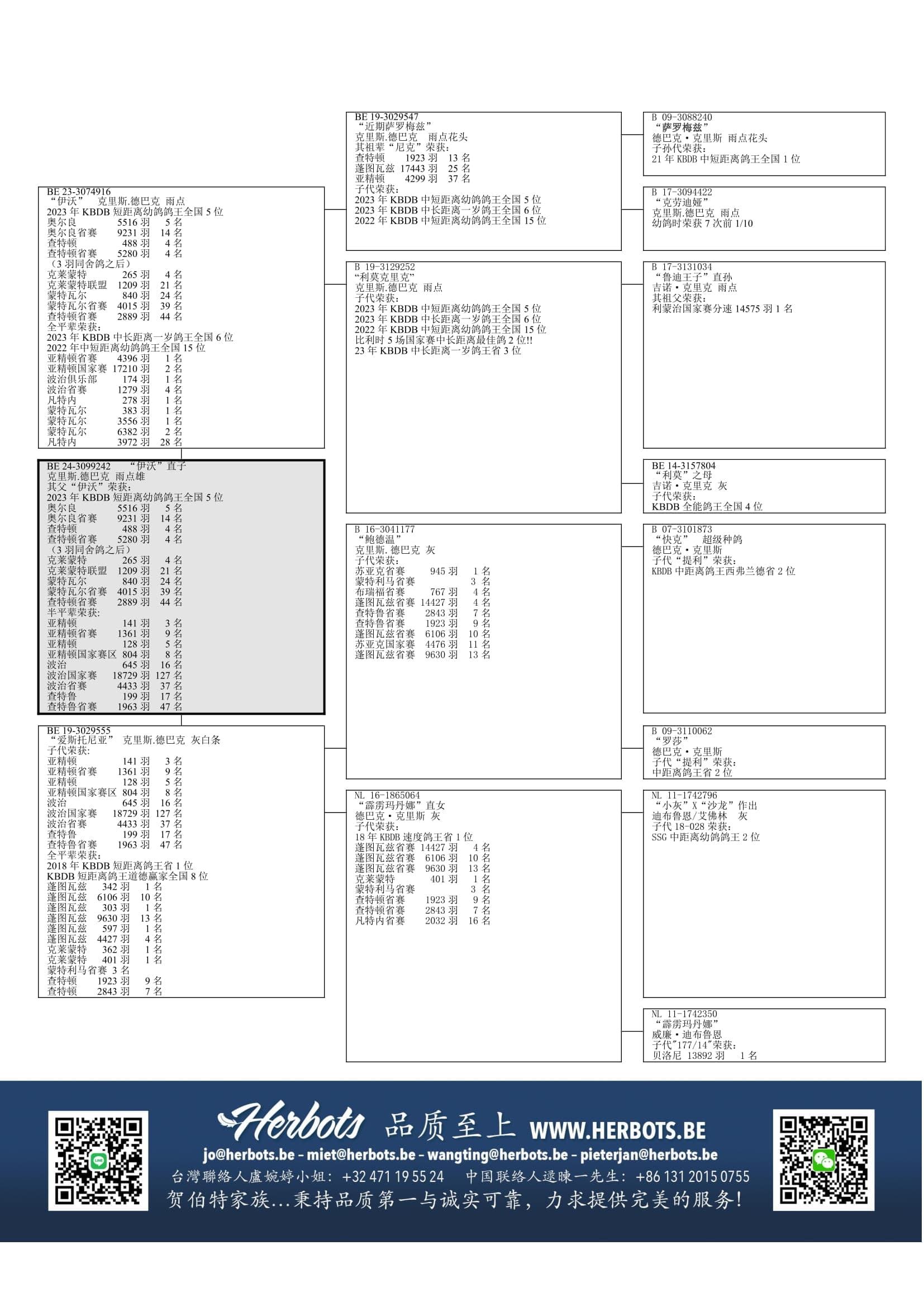“海因” (23年KBDB中长距离一岁鸽王全国6位)以及22年KBDB中距离鸽王全国15位
