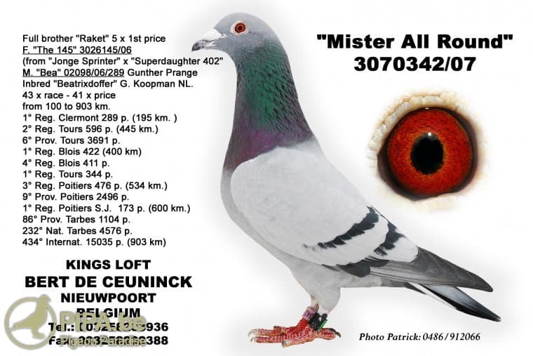 5,475羽1名 (分速 12,000羽1名) – 森斯 1,290羽1名