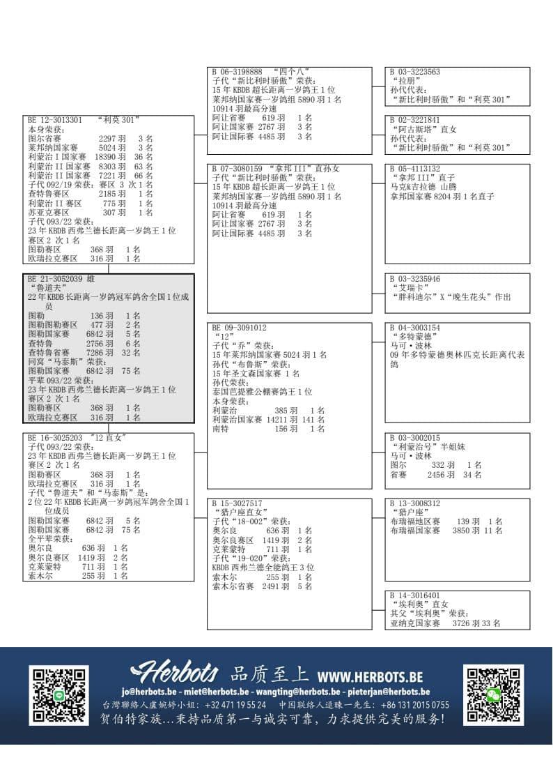 22年KBDB长距离一岁鸽冠军鸽舍全国1位成员