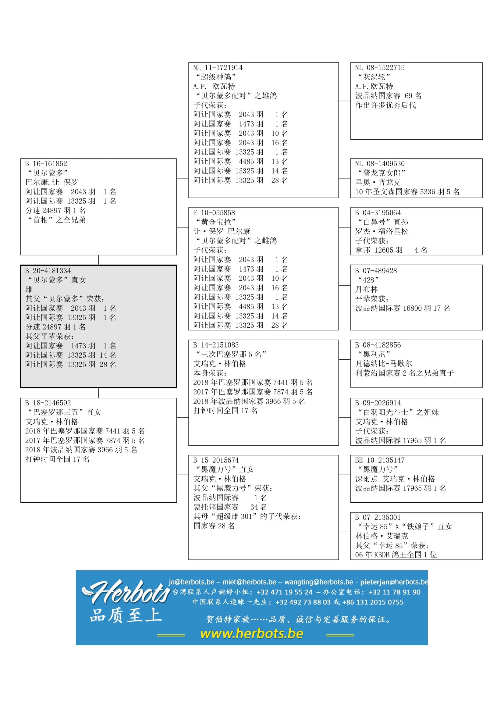 阿让国家赛法国 1,473羽1名 – 阿让国际赛 一岁鸽组 4,485羽13名 – 阿让国际赛 13,325羽28名 – 圣文森国际赛 11,515羽93名