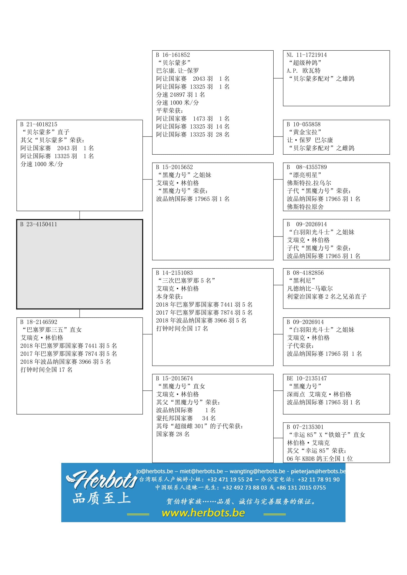 阿让国家赛法国 1,473羽1名 – 阿让国际赛一岁鸽组 4,485羽13名 – 阿让国际赛 13,325羽28名 – 圣文森国际赛 11,515羽93名