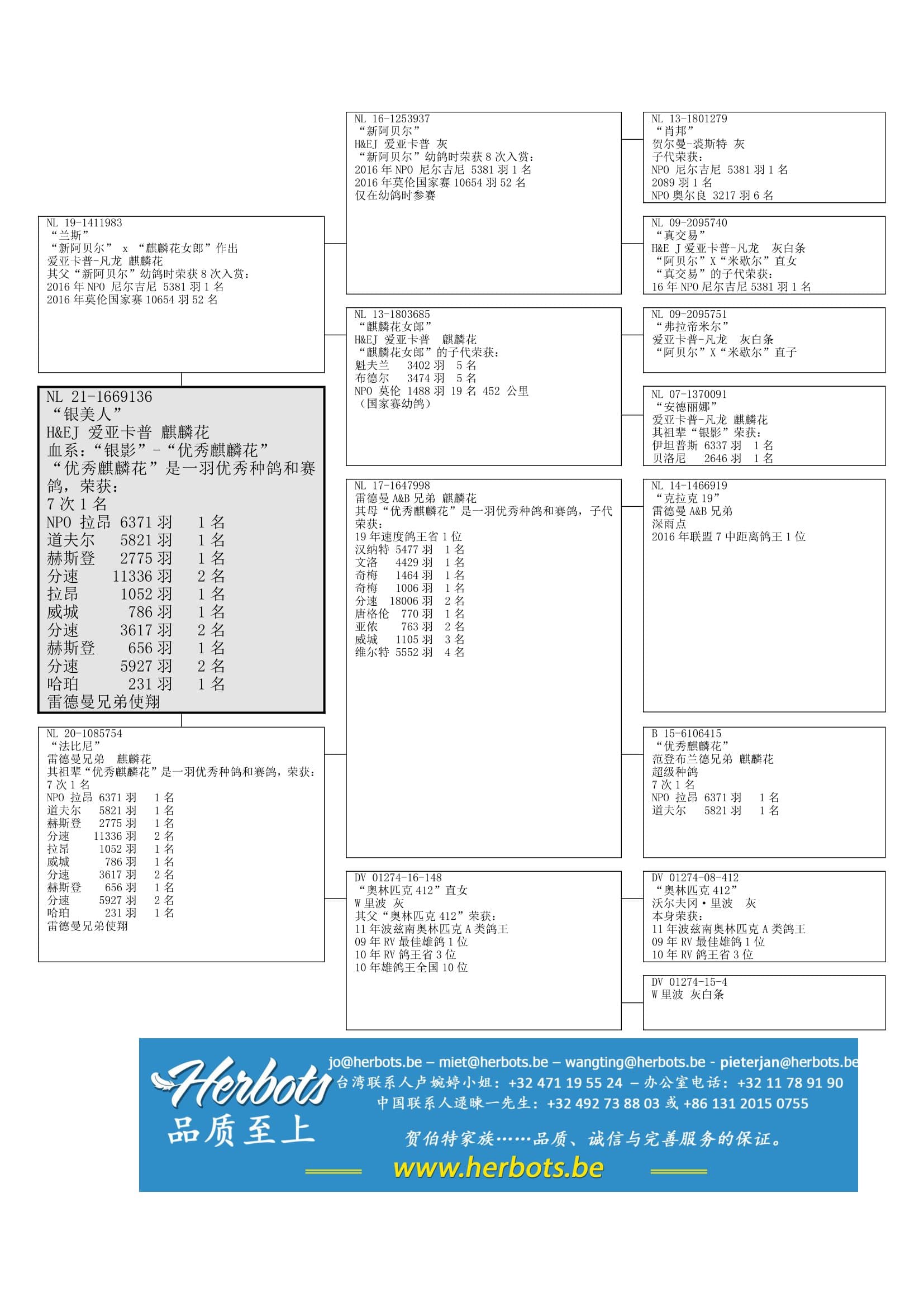 “优秀麒麟花”: 荣获 7 次1名 – 拉昂 6,371羽1名 - 道夫尔 5,821羽1名 – 赫斯登 2,775羽1名 (分速11,336羽2名) – 拉昂 1,052羽1名 – 威城 786羽1名 (分速 5,927羽2名) – 哈珀 231羽1名