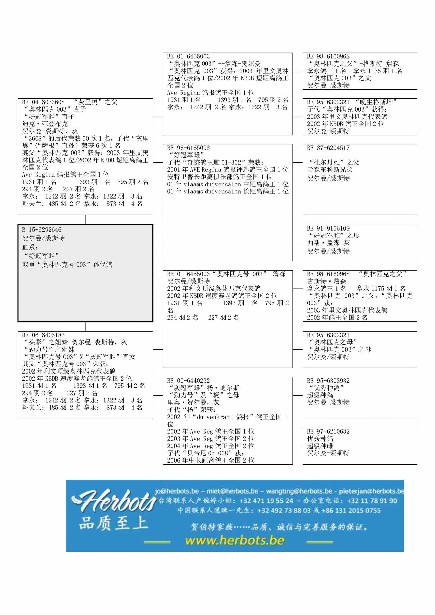 “奥林匹克 003”双重直孙“灰冠军雌” (“奇迹鸽王雌”之母) 直孙“灰冠军号” (“杨”之母) 直孙
