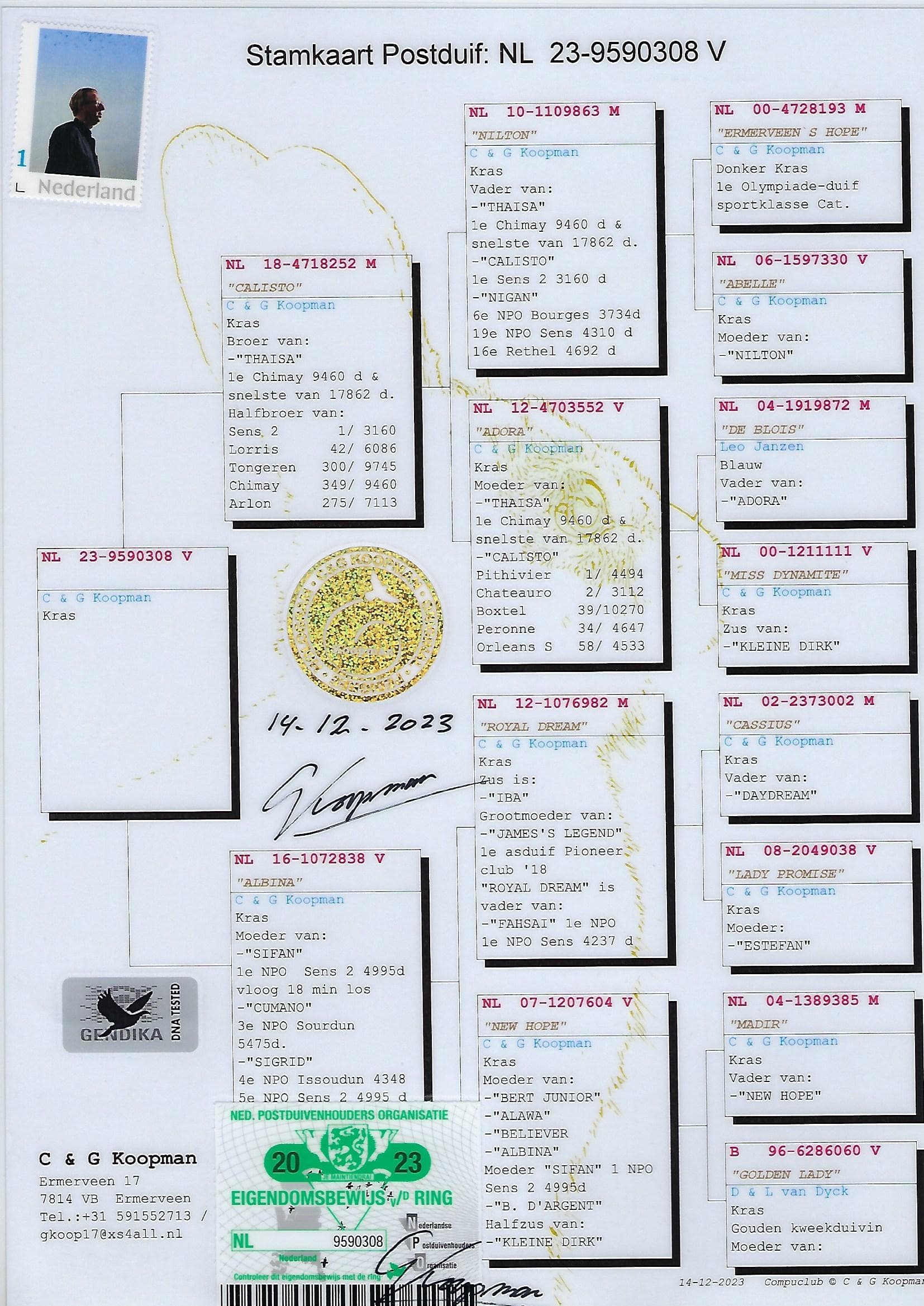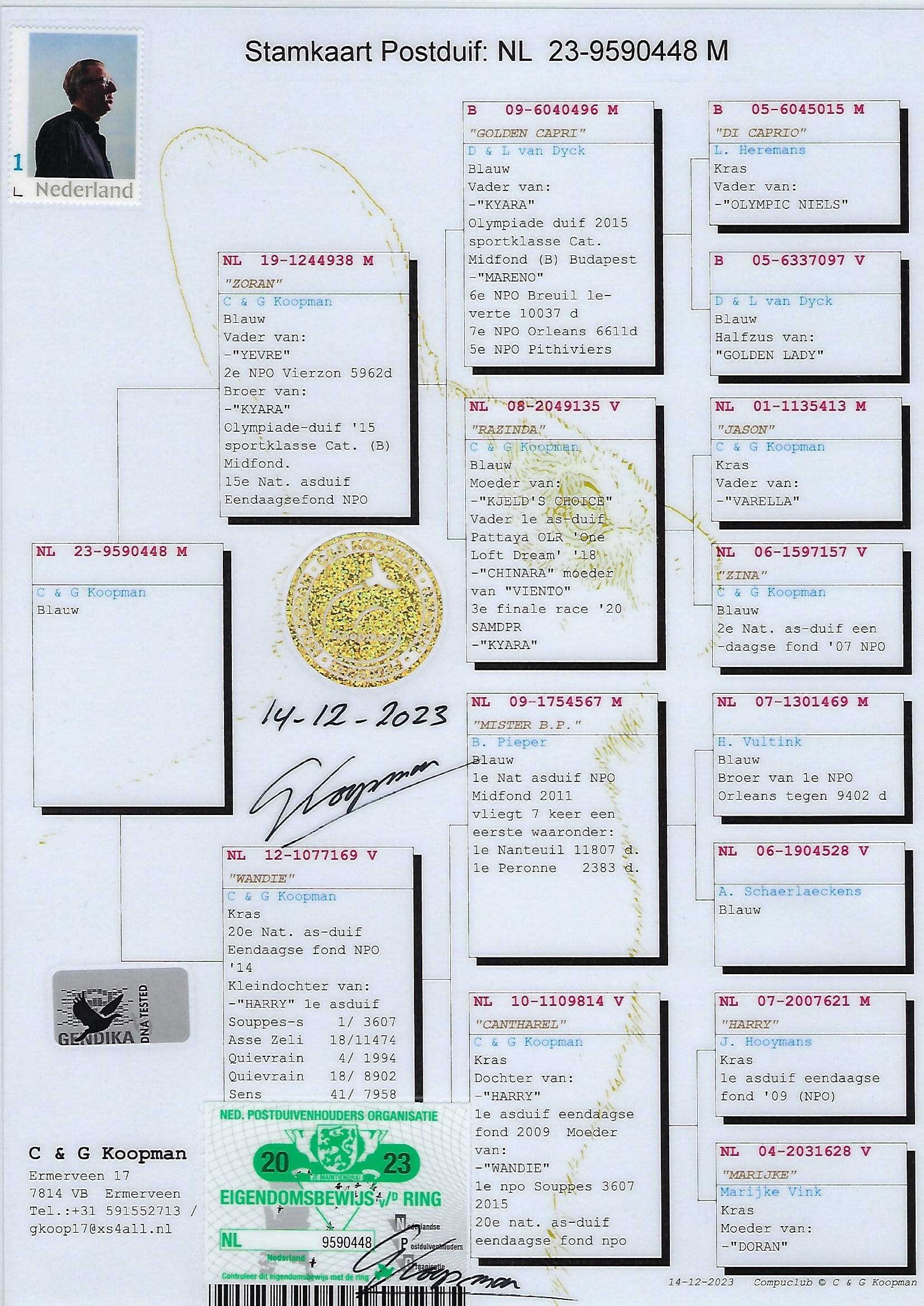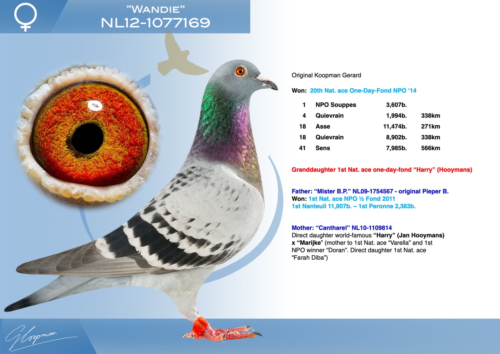 荣获: 2014年NPO长距离鸽王全国20位