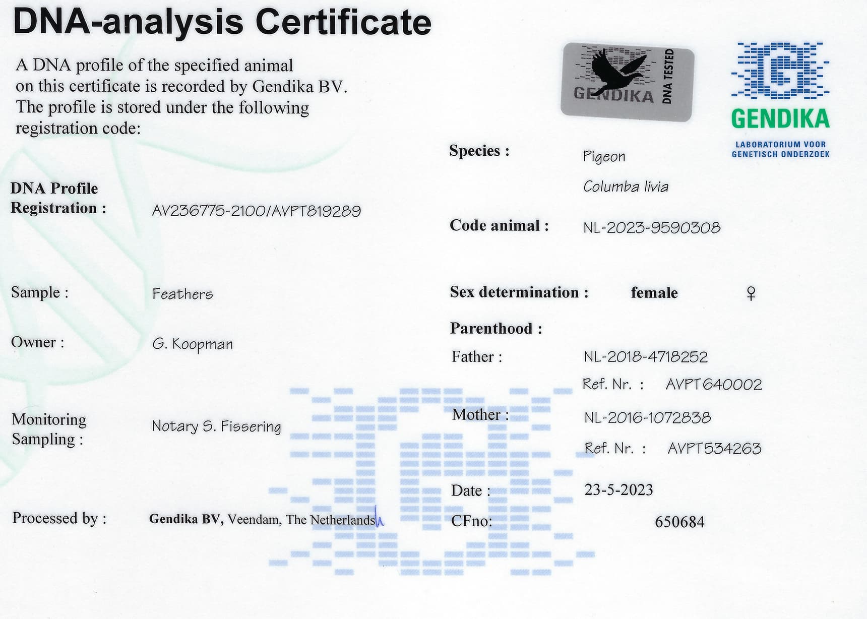 2羽吉拉德·考夫曼原舍鸽作出