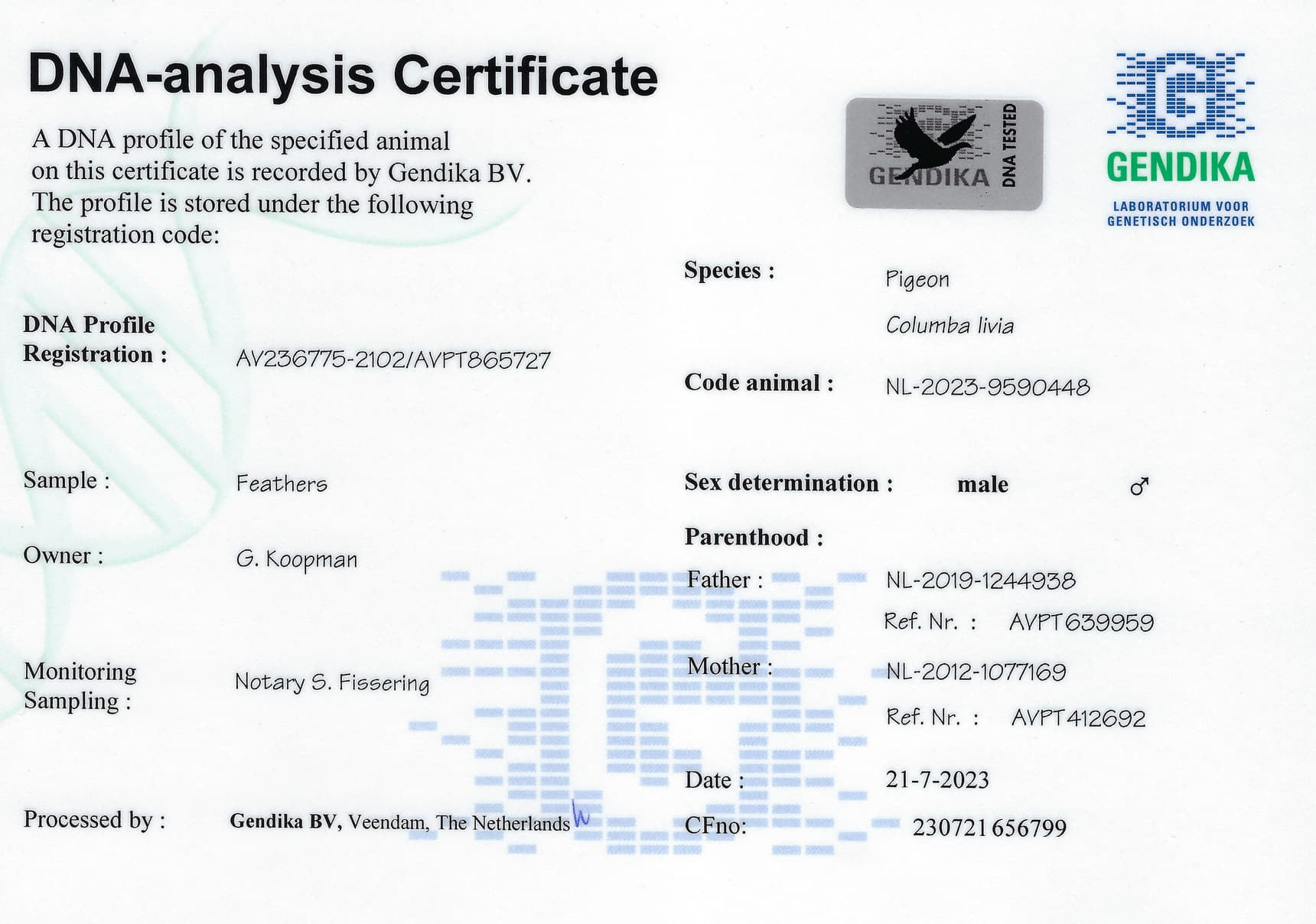 奥林匹克代表鸽“琪拉”之全兄弟