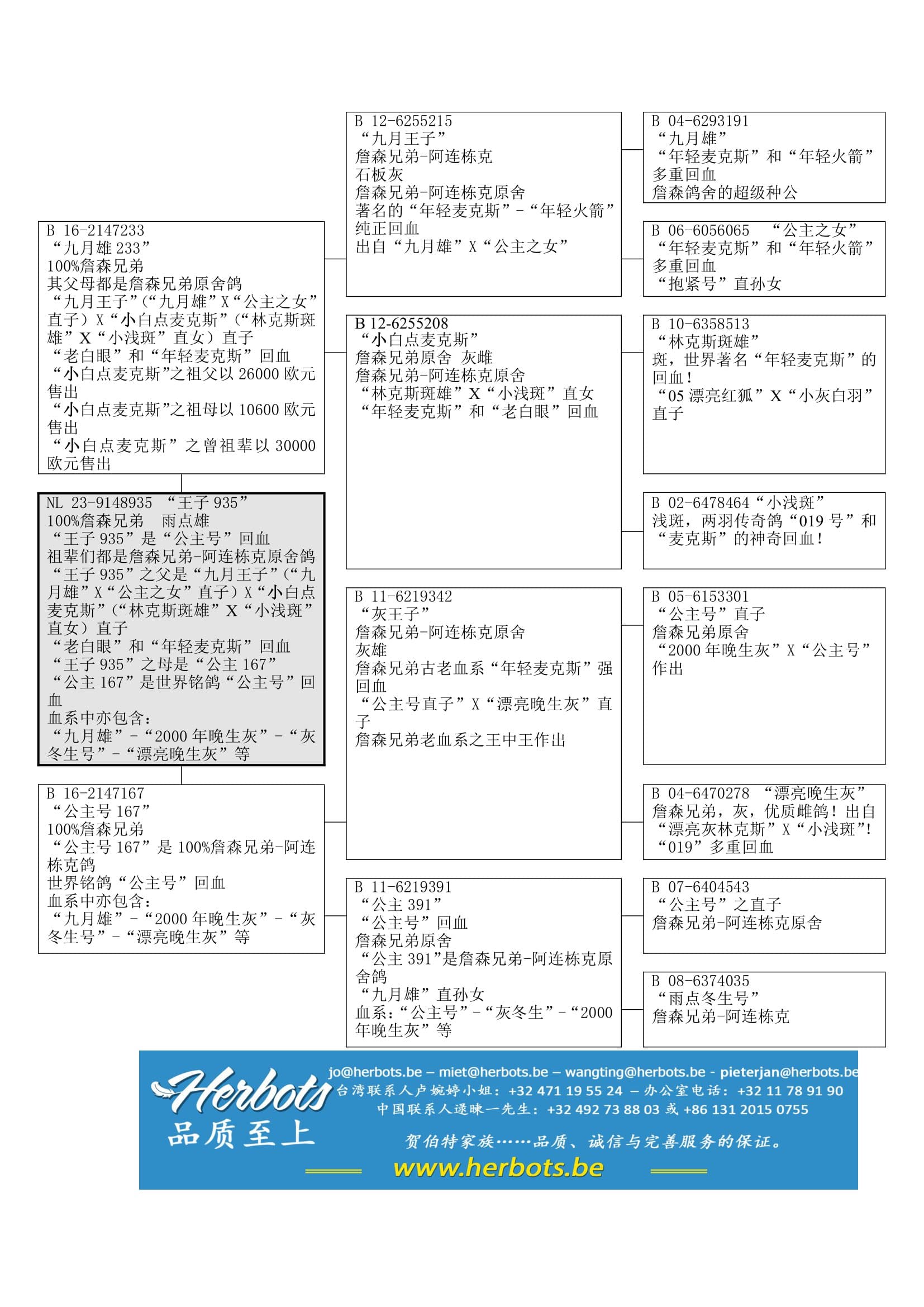 世界铭鸽 “公主号”回血,辅以下列著名血系: