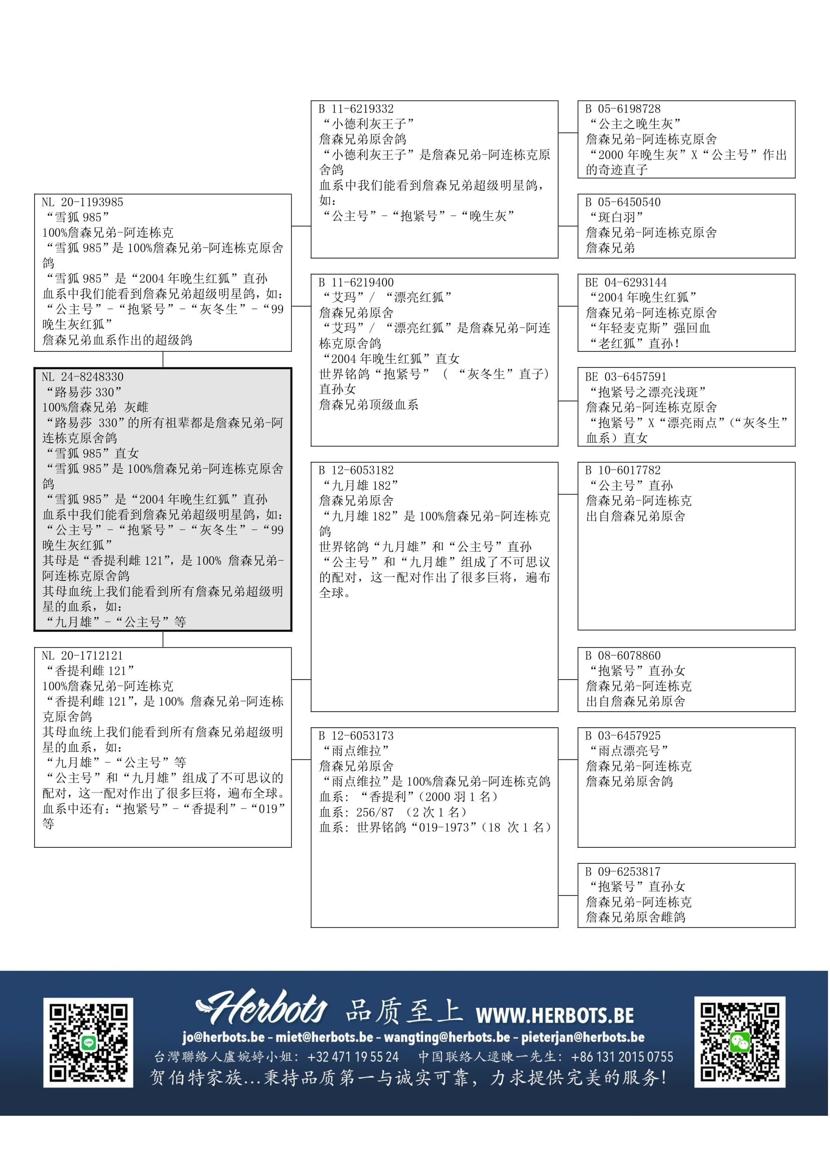 4羽祖辈们都是詹森兄弟-阿连栋克原舍鸽