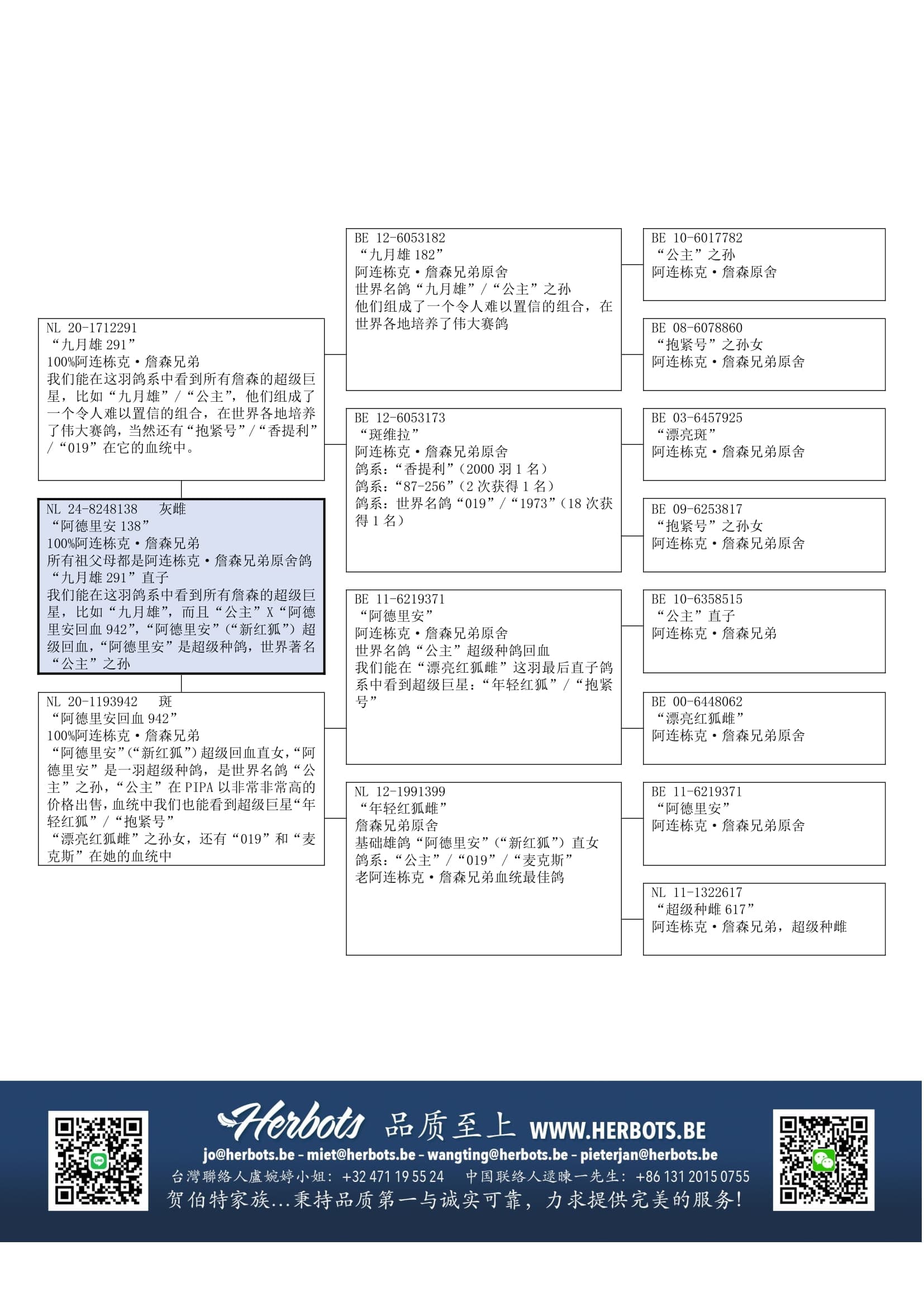世界名鸽 “九月雄” 与种鸽鸽系 “抱紧号” / “公主”共同作育之孙