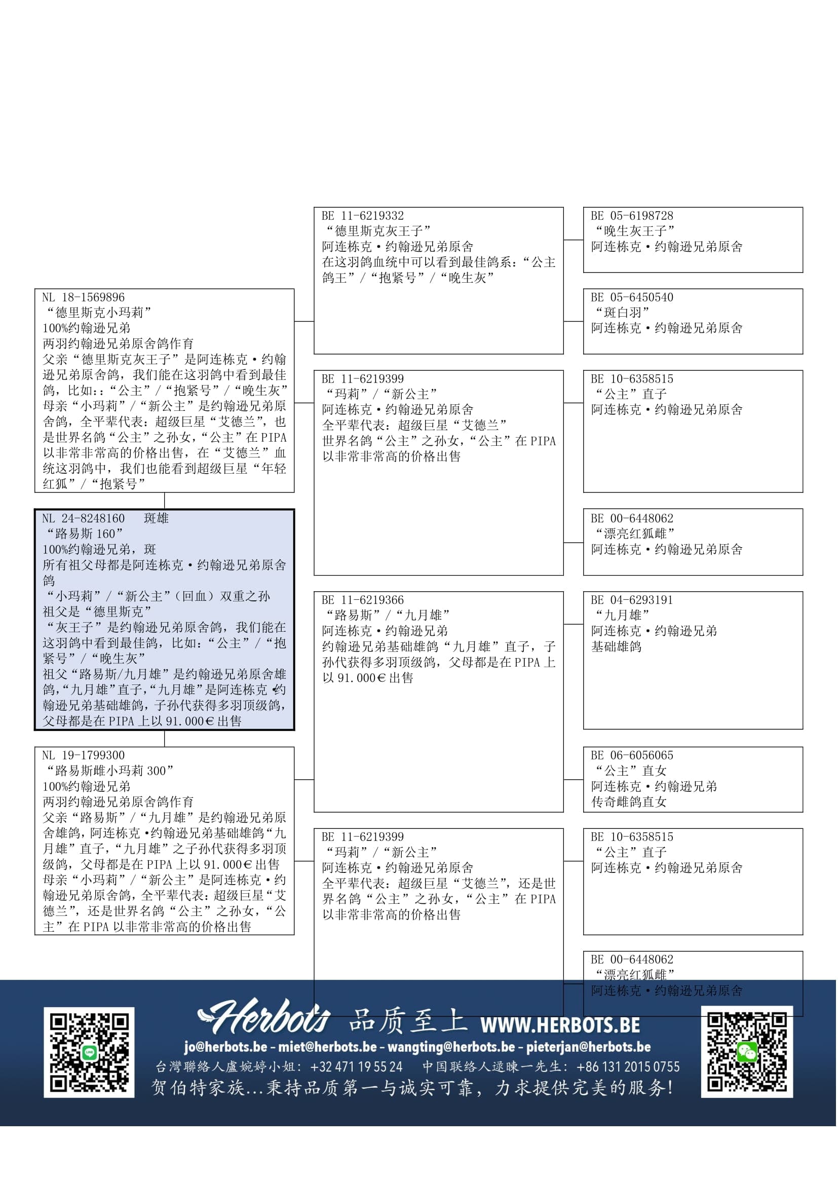 鸽系:著名詹森鸽“王子”, “抱紧号”,“晚生灰”.