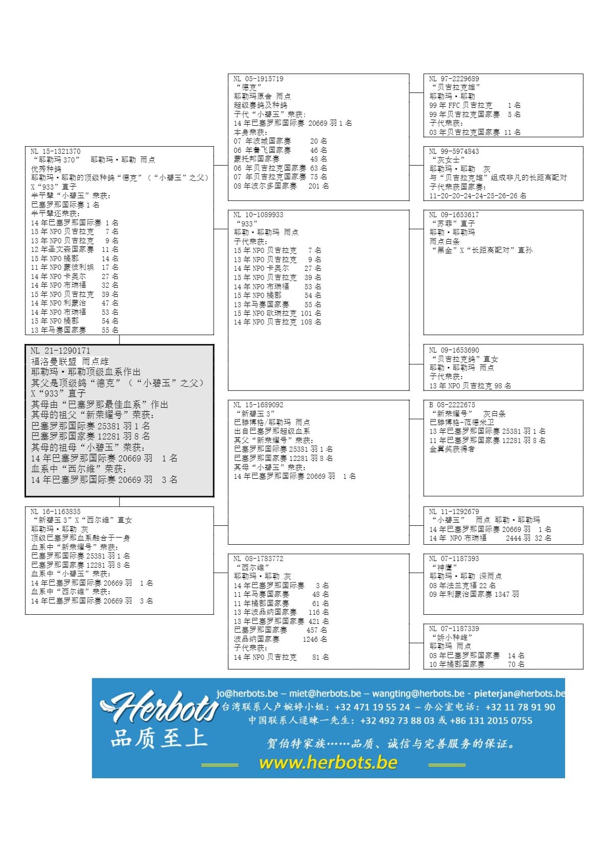 其祖辈“小碧玉”荣获: 巴塞罗那国际赛    20,669羽1名