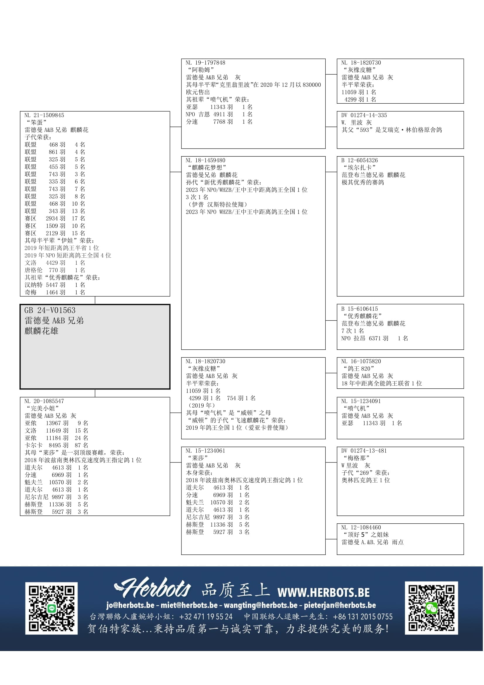 “阿勒姆” (孙代荣获:11,343羽1名 – 4,911羽1名等等 – 是“克里翁里波”之母之半姐妹直子) x“麒麟花梦想” (孙代“新优秀麒麟花”荣获:WHZB/王中王鸽王全国1位- 伊普 汉斯特拉使翔)  作出