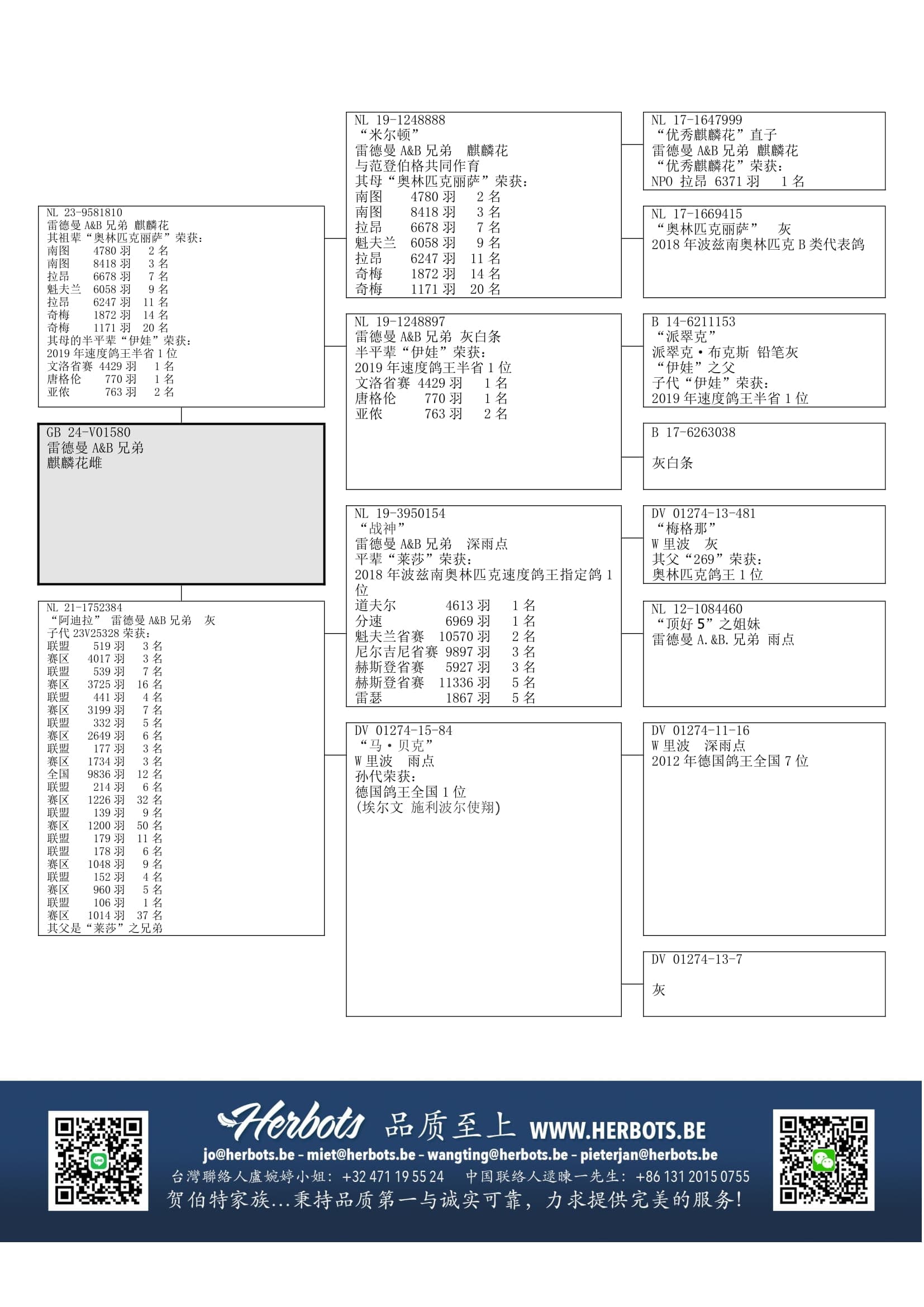 提拉” (子代荣获:国家赛 / 省赛1名-1名-1名-2名-3名-3名-3名-3名-4名-5名-5名-8名-13名-14名等 - 孙代荣获:国家赛/NPO/省赛 12次1名 - 曾孙代荣获:荷兰奥林匹克鸽王1位, 鸽王全国1位 &  NPO 1名) – 等等