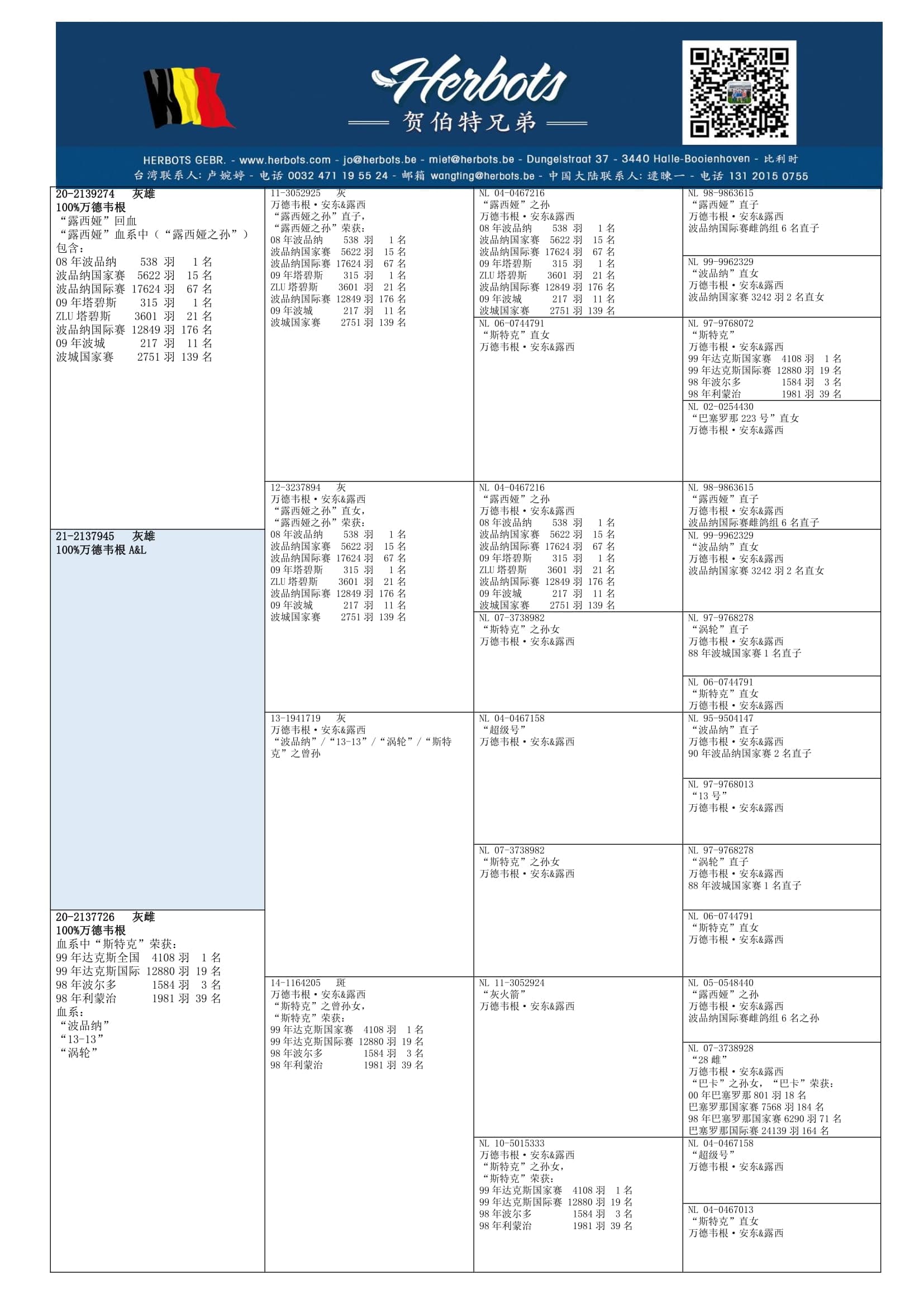 作育者: 100% VAN DER WEGEN A. & L. 100% 纯范德维根血系