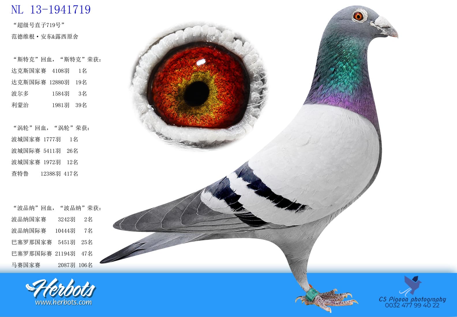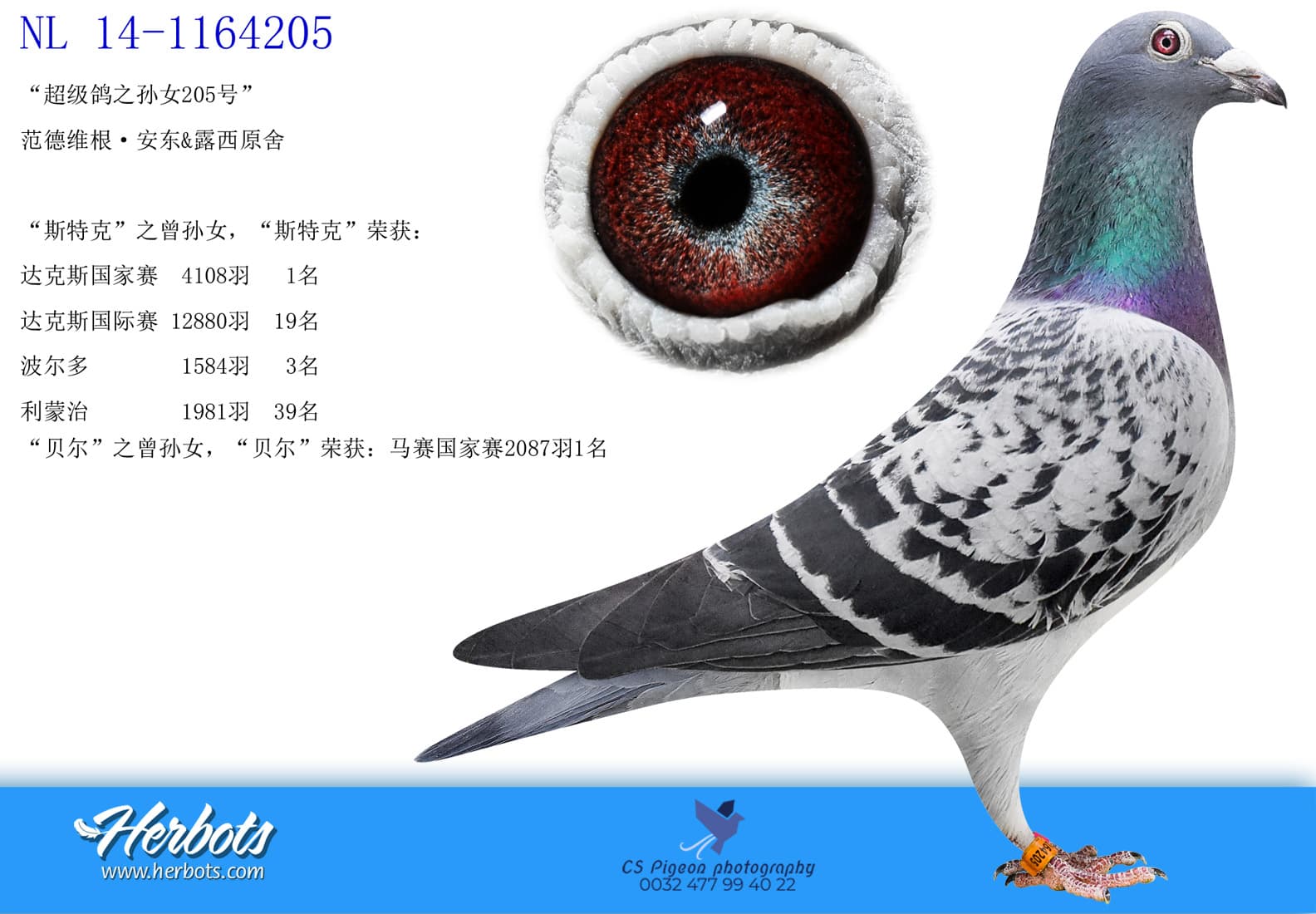 “斯特克”曾孙女, “斯特克”荣获:达克斯国家赛4,108羽1名 – 达克斯国际赛 12,880羽19名
