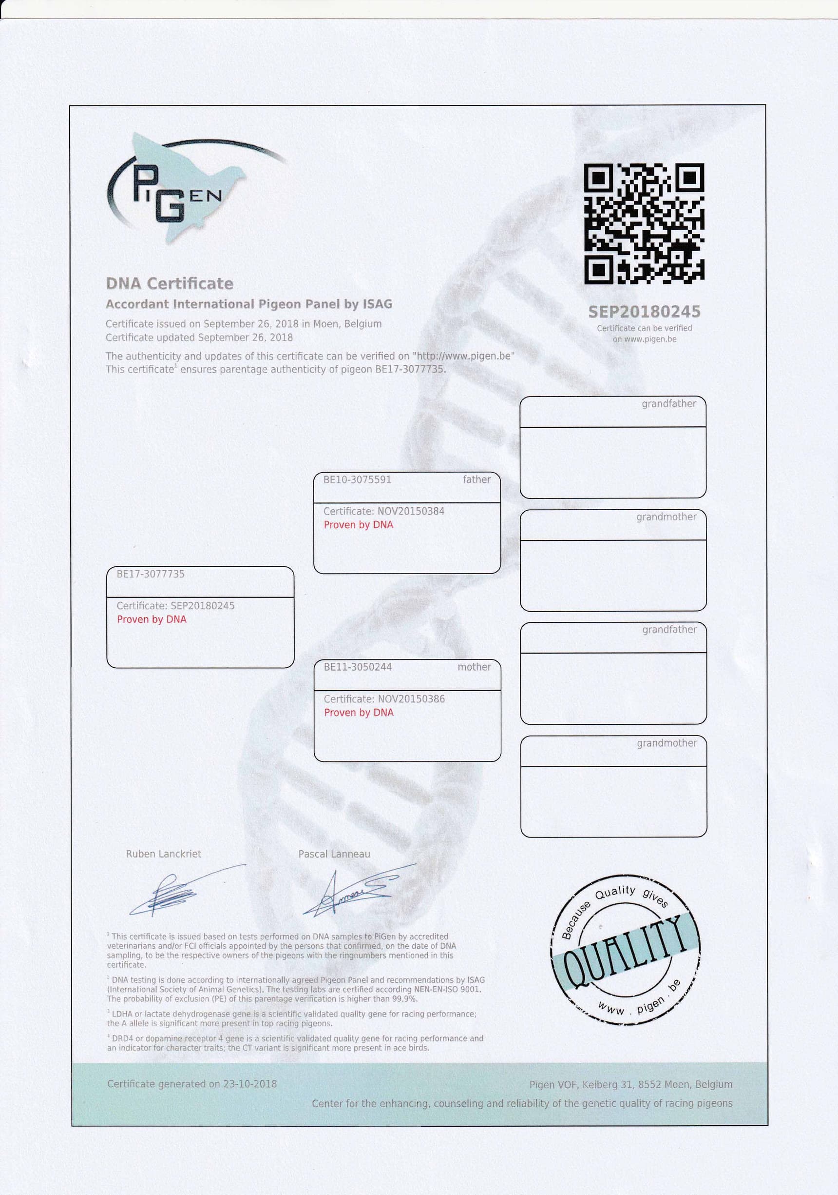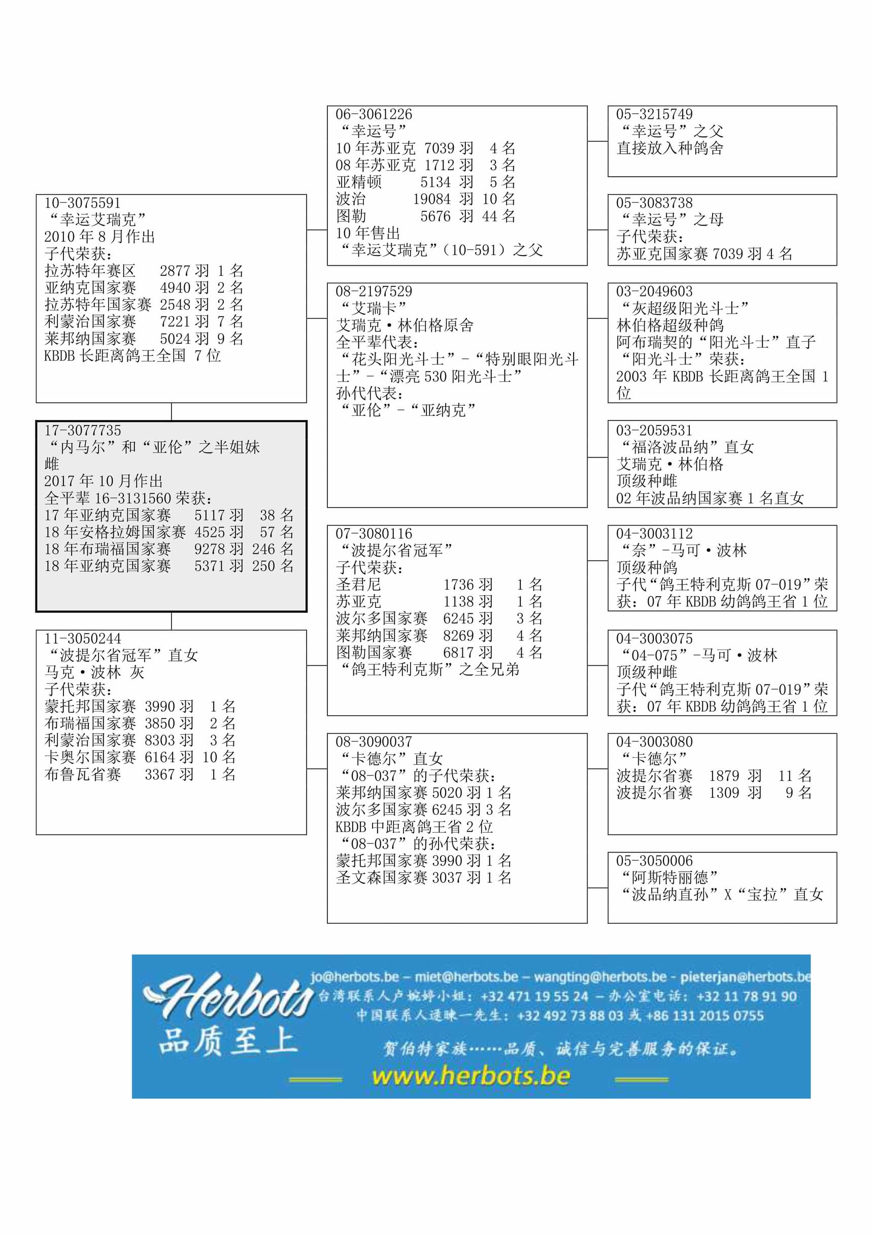 “08-10”之半姐妹,“08-10”荣获:拉苏特年国家赛区 2,877羽1名 - 拉苏特年国家赛 2,548羽2名, 利蒙治国家赛 7,221羽7名, 莱邦纳国家赛 5,024羽9名, KBDB 长距离一岁鸽王全国7位