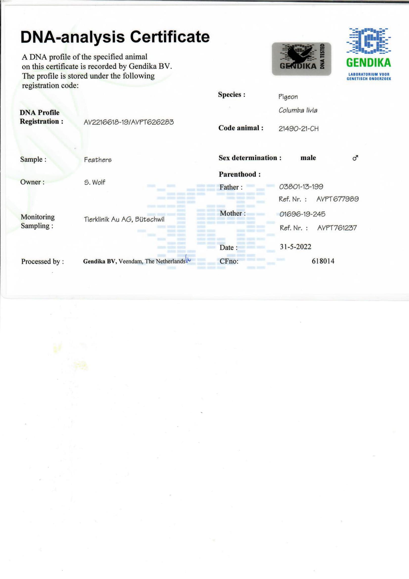 作育者: ALP RACE TEAM/SIMON WOLF 阿尔卑赛鸽队