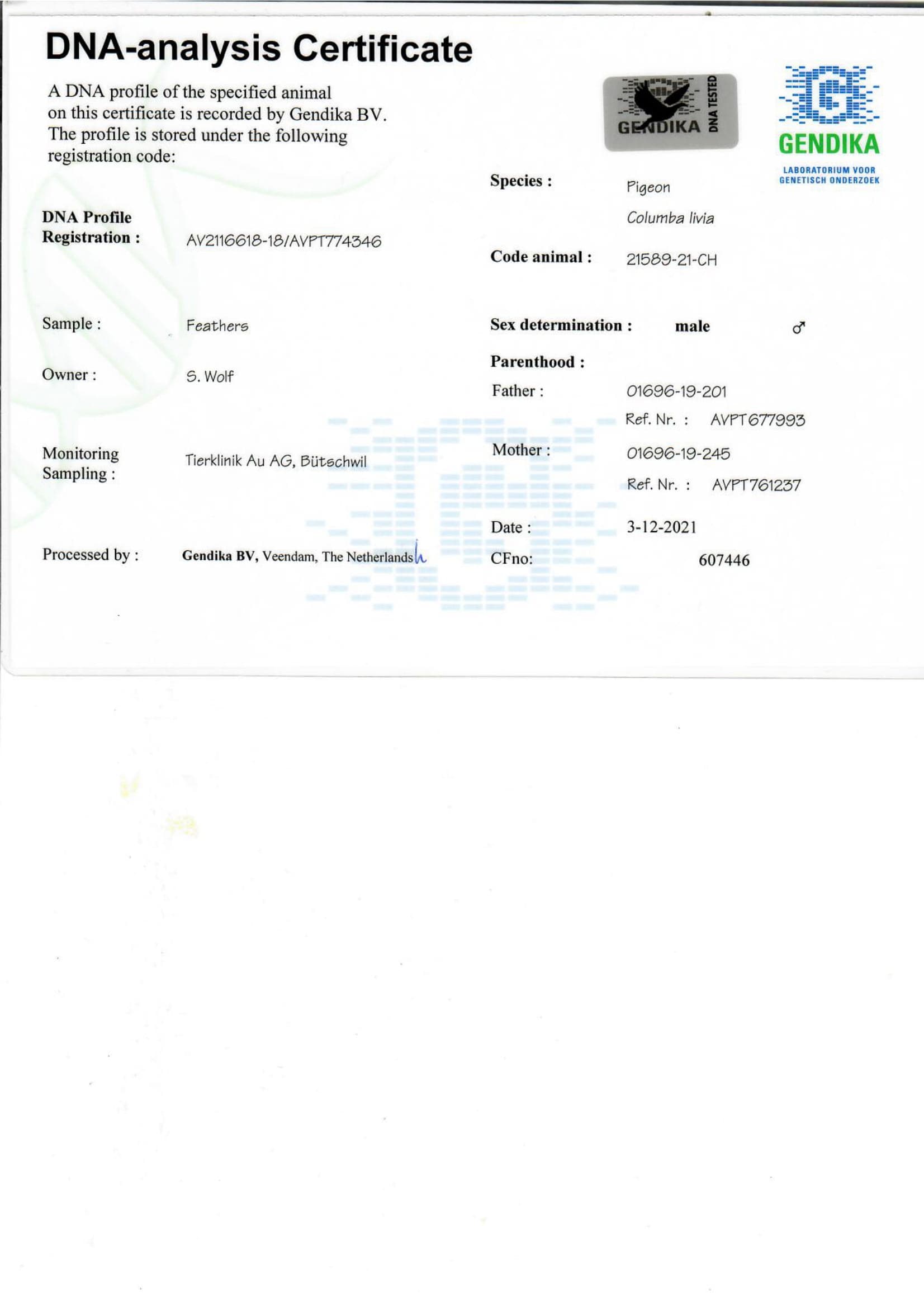 作育者: ALP RACE TEAM/SIMON WOLF 阿尔卑赛鸽队