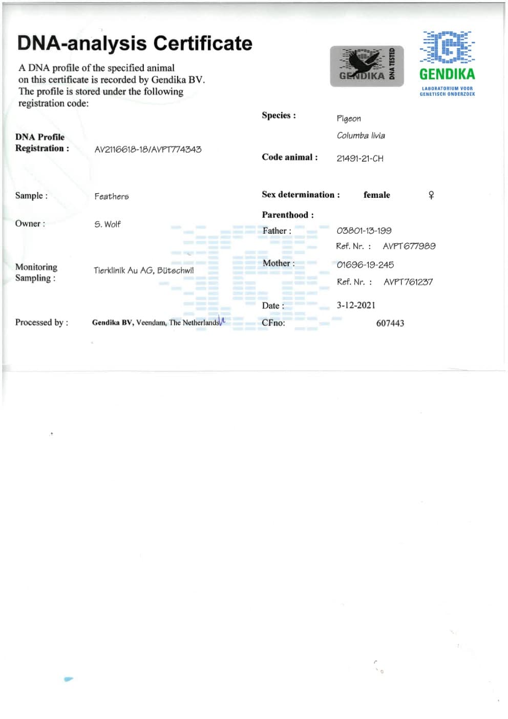 作育者: ALP RACE TEAM/SIMON WOLF 阿尔卑赛鸽队