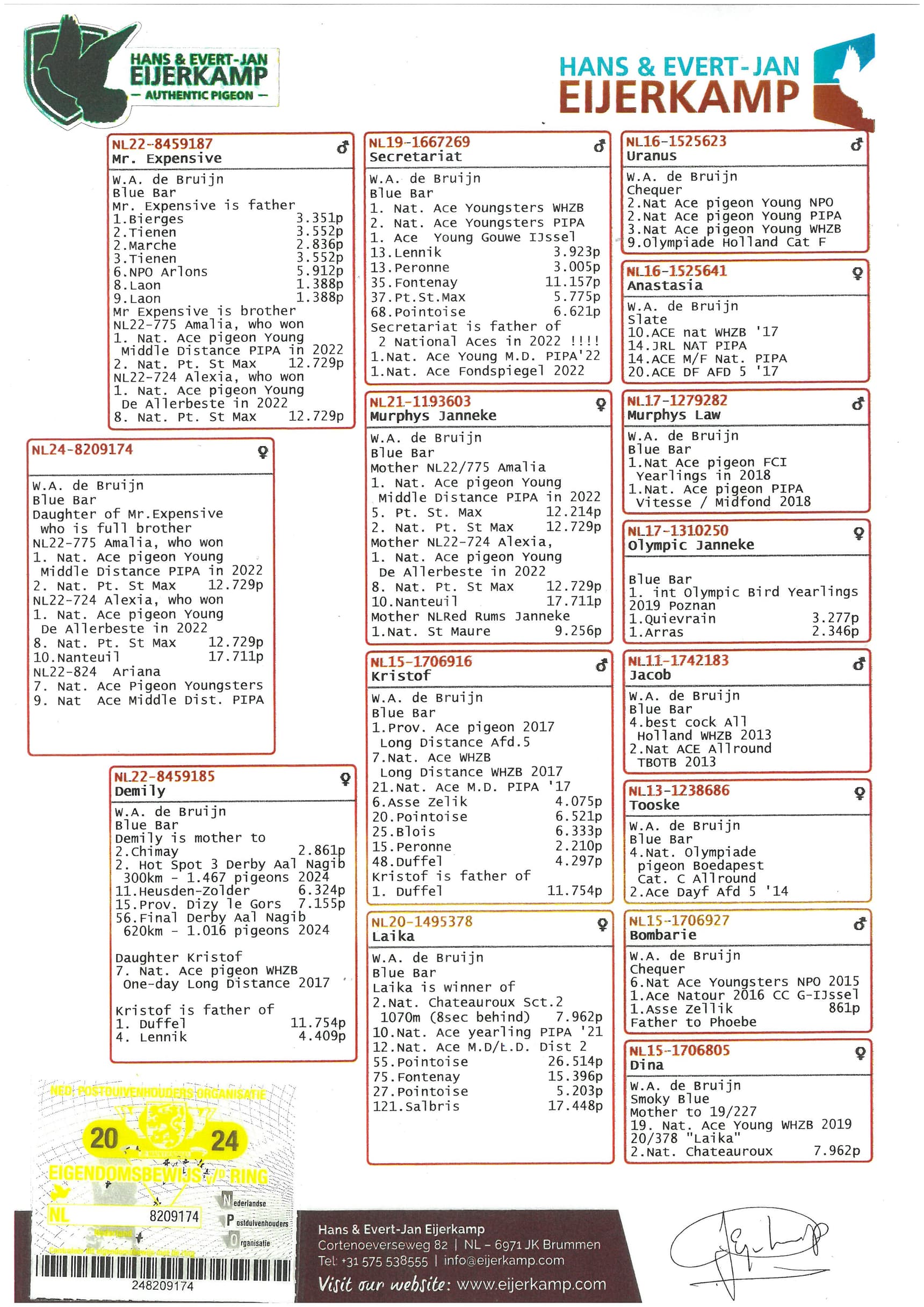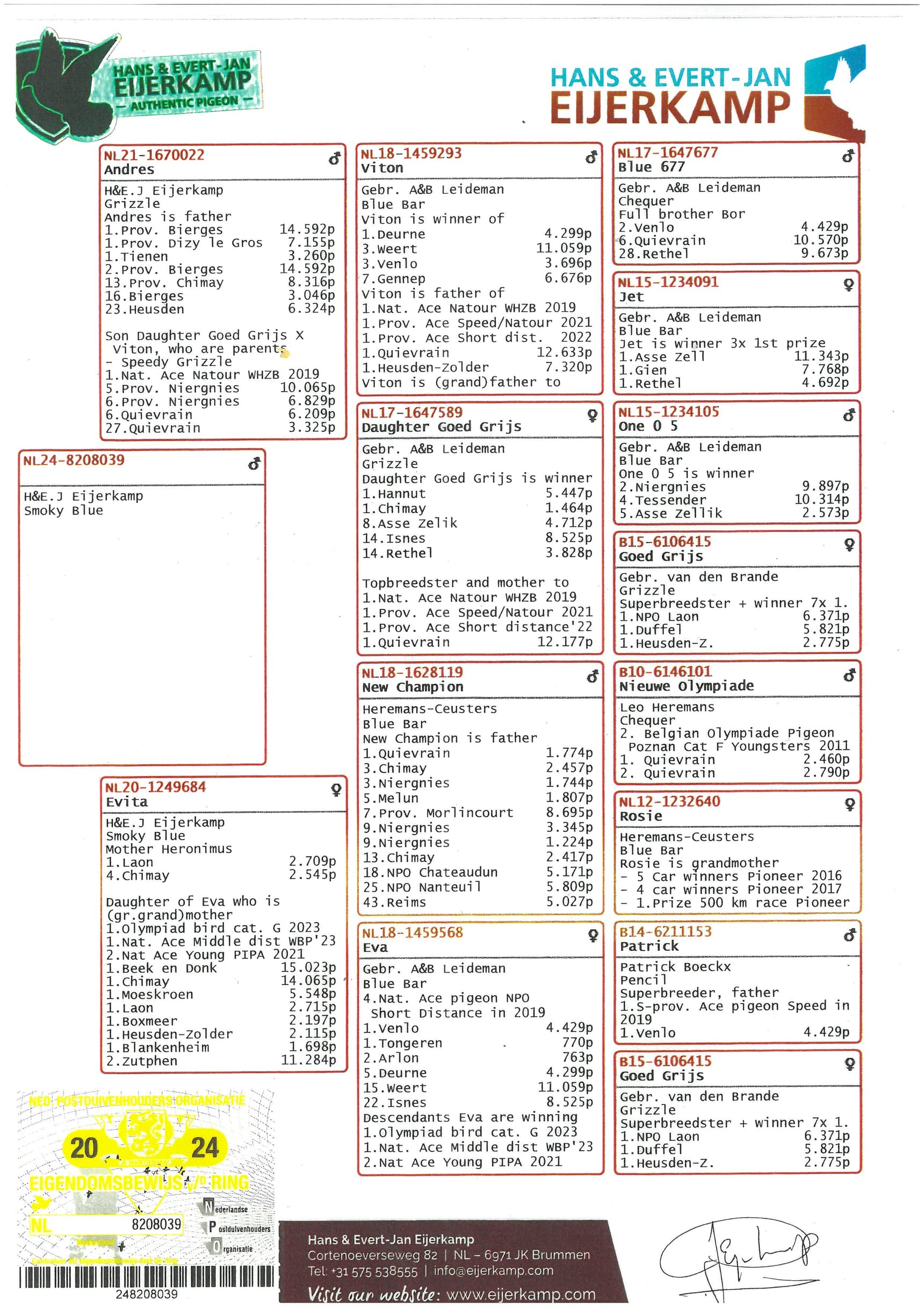 “克里斯托夫” (鸽王省1位) x “莱卡”作出