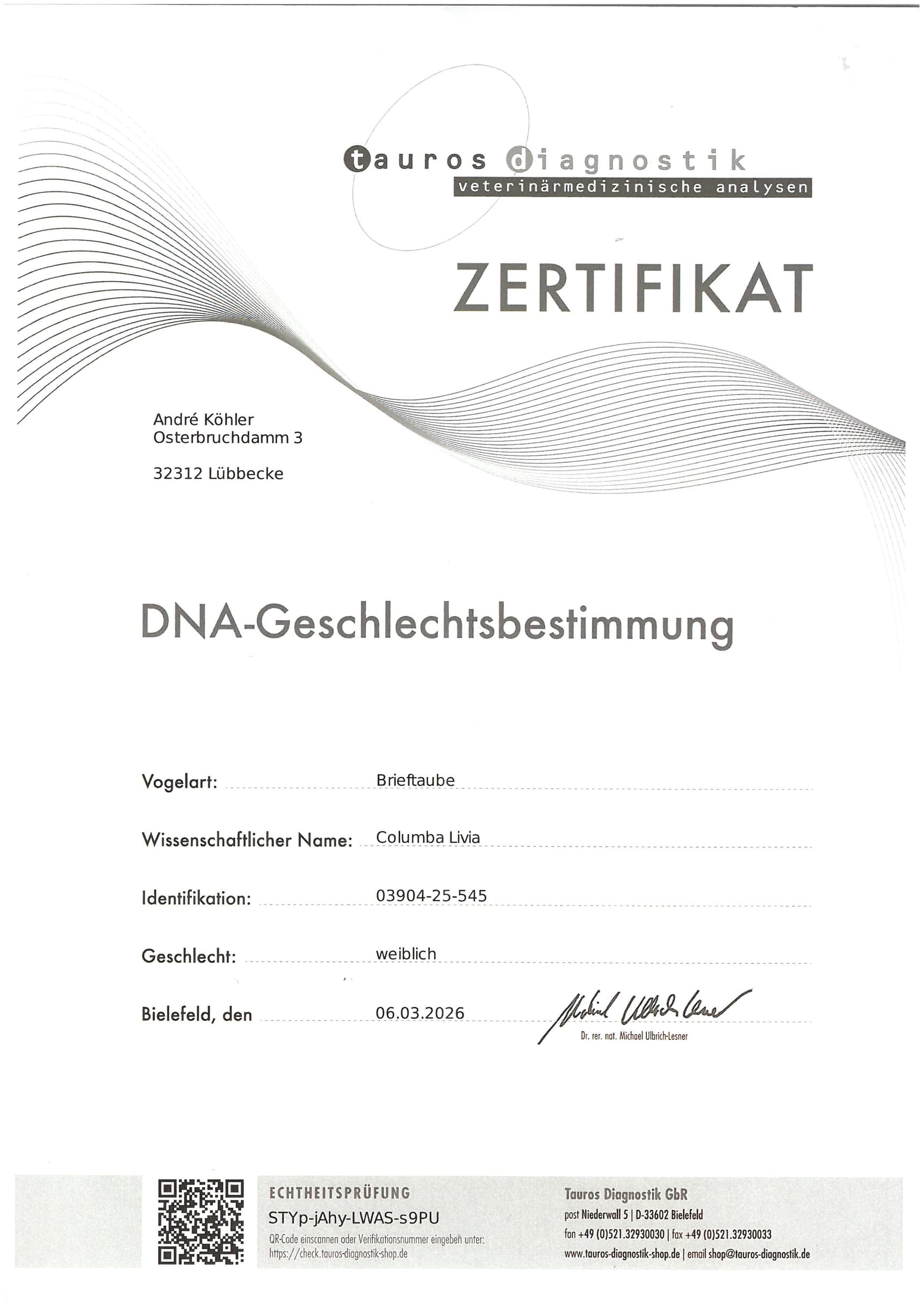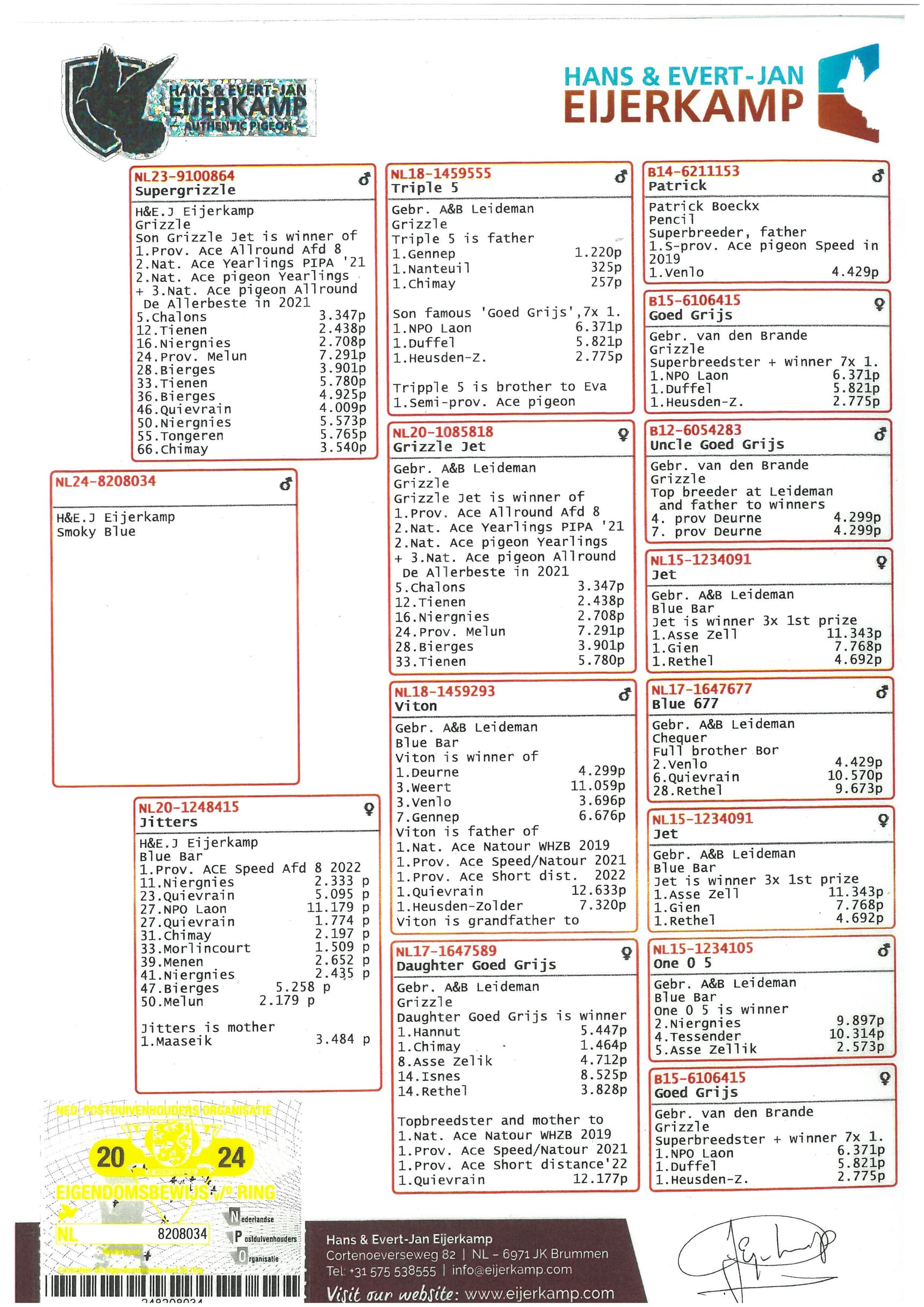 “克里斯托夫” (鸽王省1位) x “莱卡”作出
