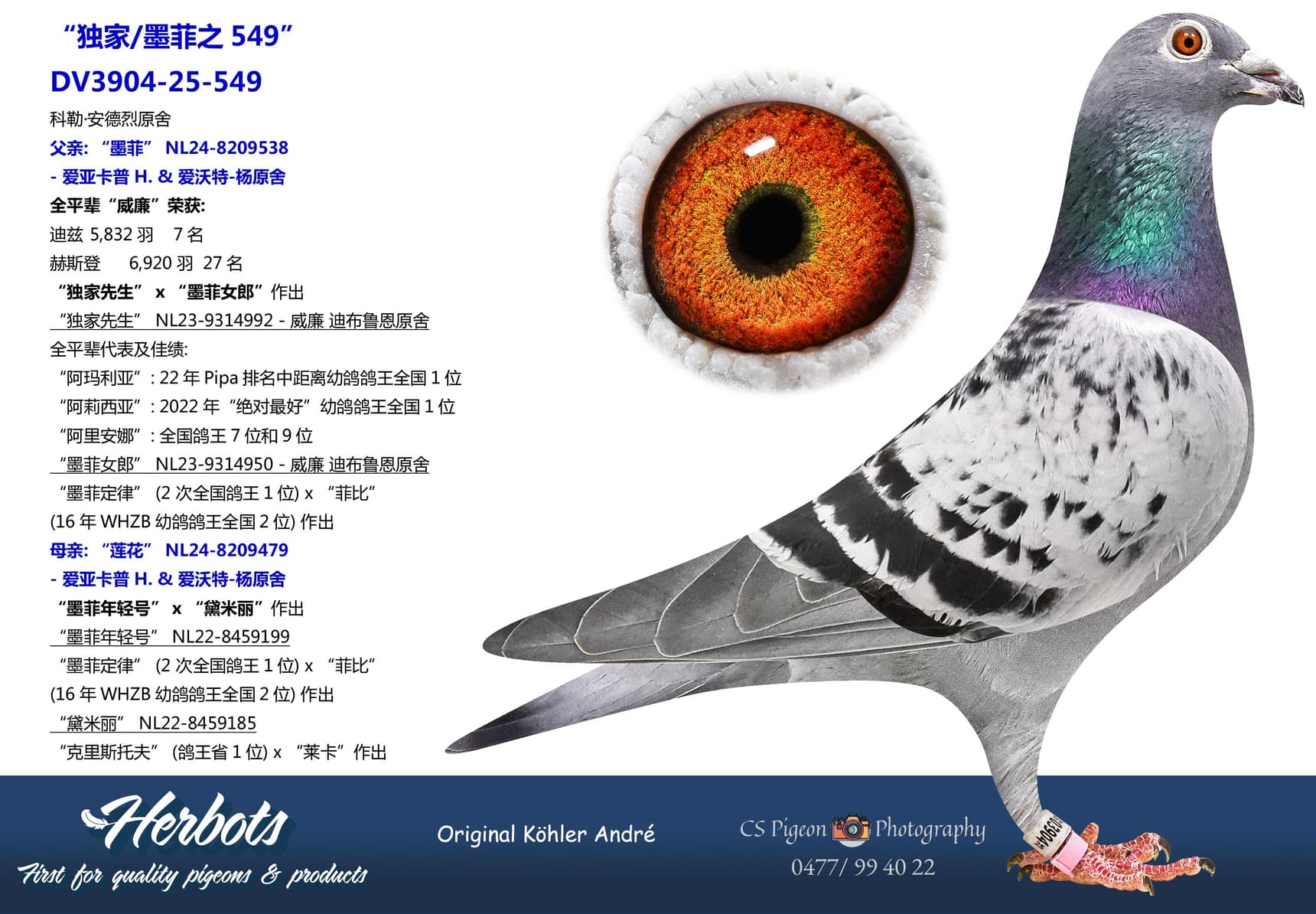 “阿莉西亚”: 2022年“绝对最好”幼鸽鸽王全国1位