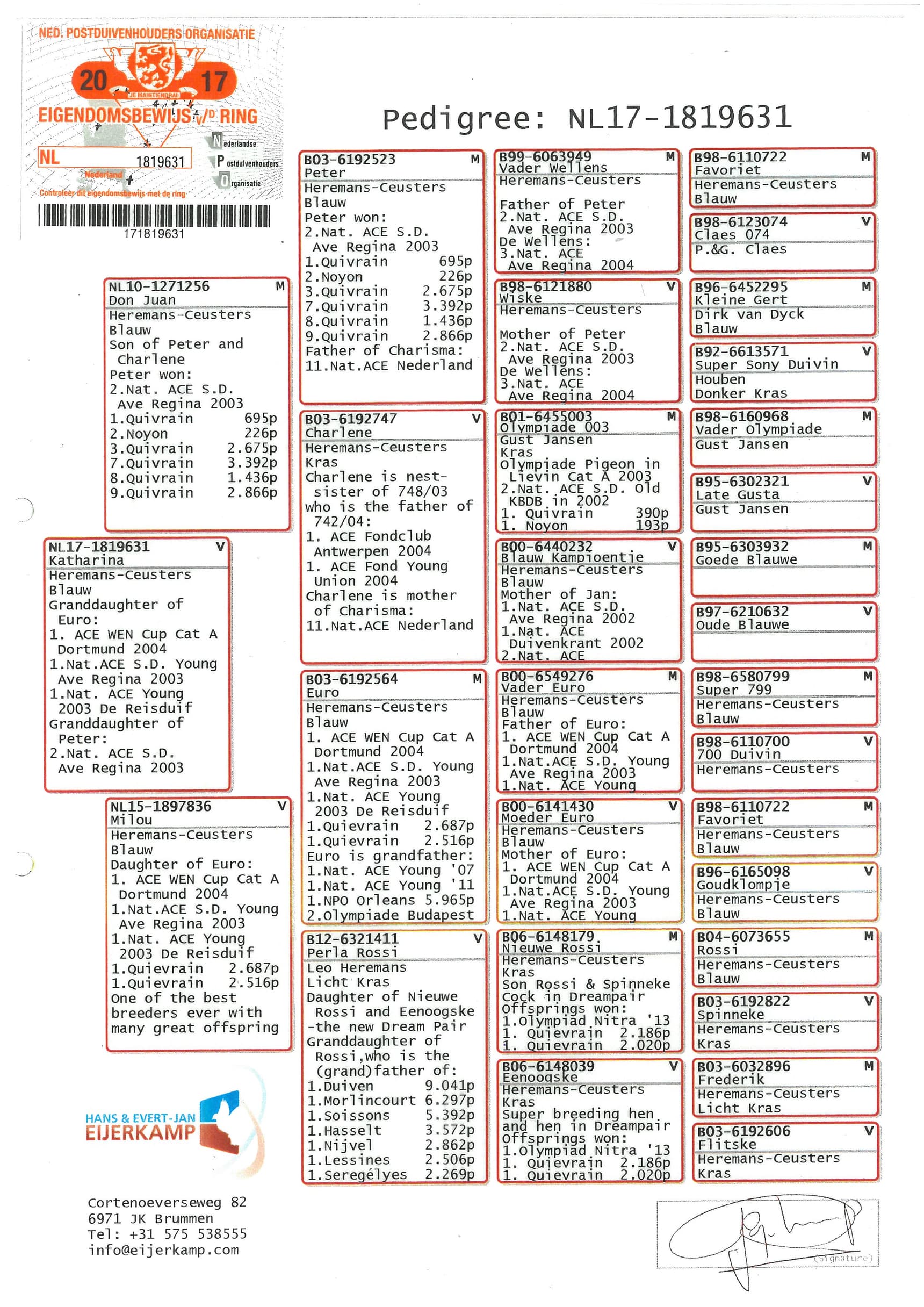 德国奥林匹克D类鸽王1位-德国全能鸽王全国2位