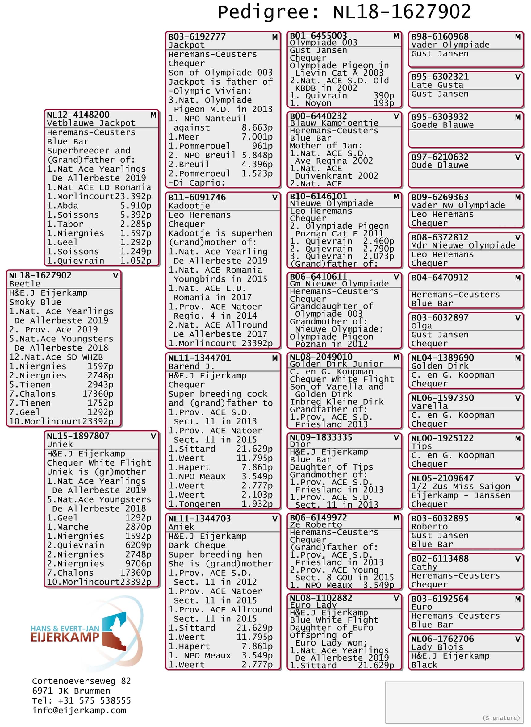 基础种雌. “顶级种鸽 165”x “汤姆直女” (“汤姆” 荣获 16 次1名 -43次前1/10) 作出