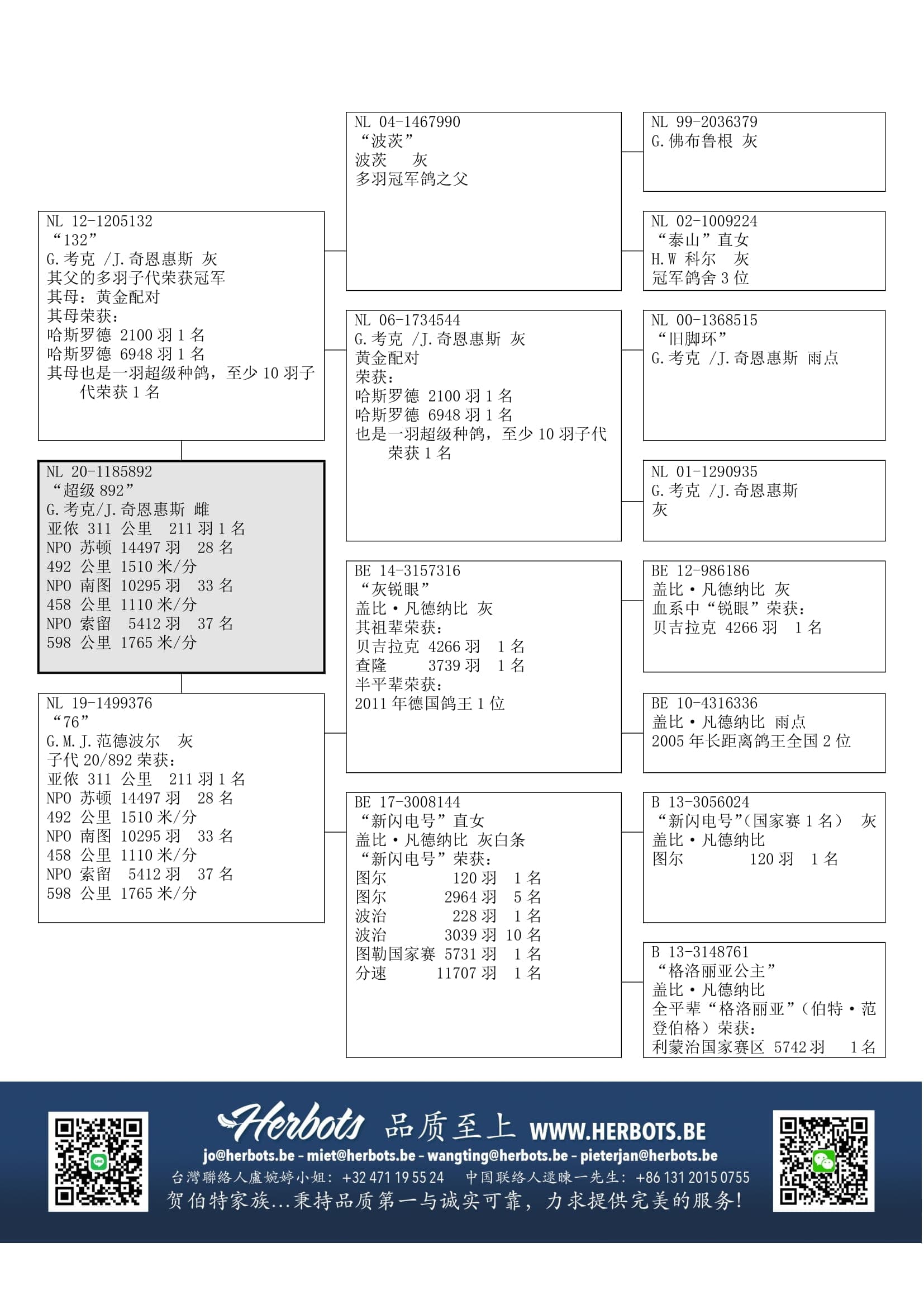 “波茨” (多羽冠军鸽之父) x “NL06-1734544” (10 多羽冠军鸽之母) 作出