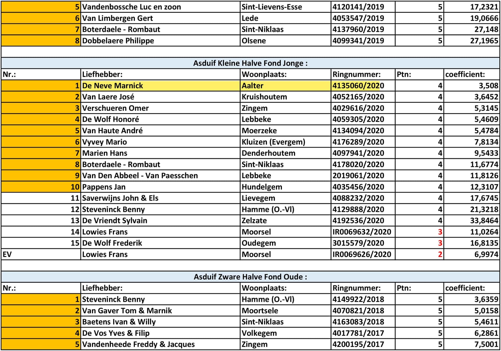 2016-2017年比利时波治最佳鸽1位(2次和3次翔绩)