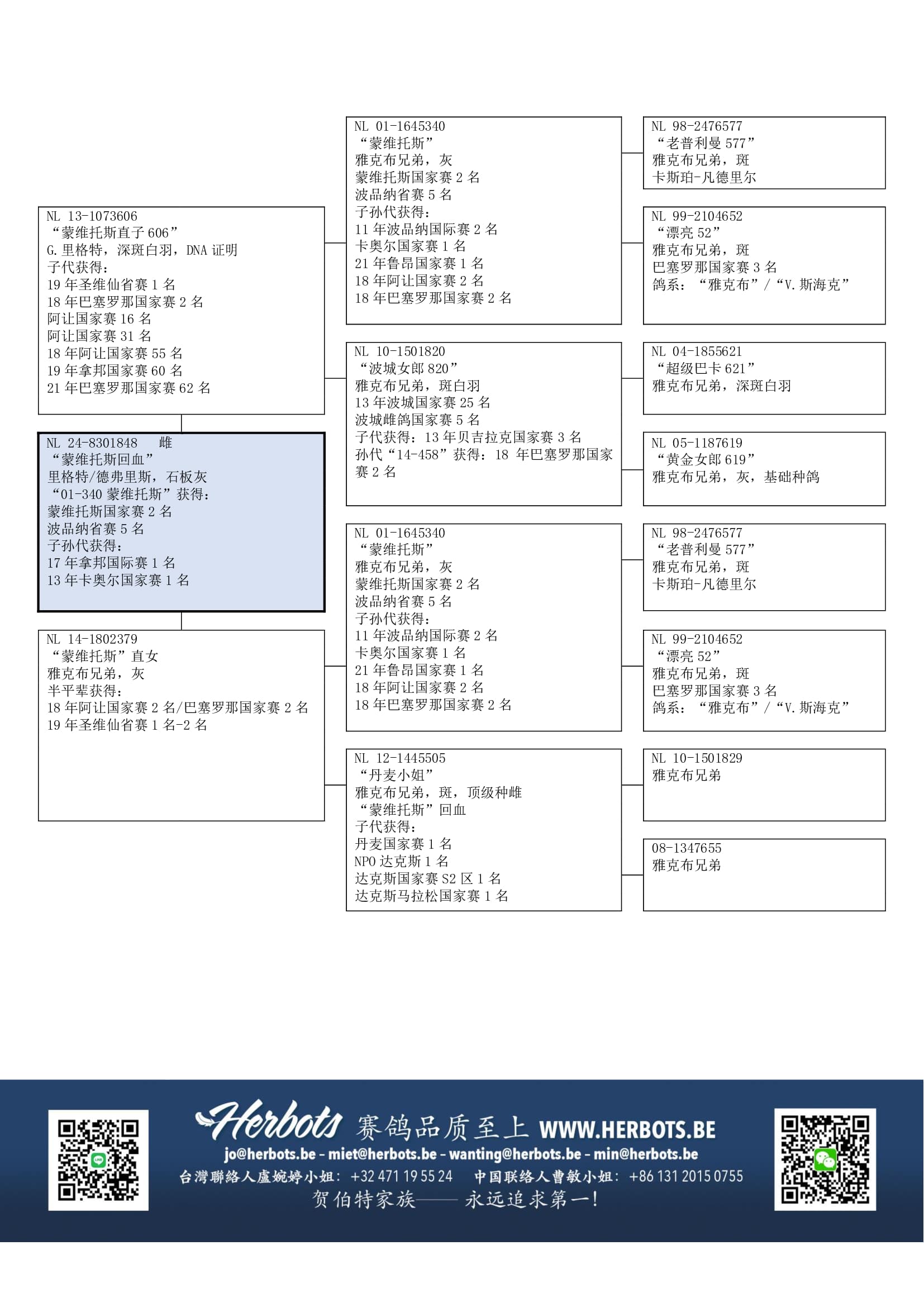 超级种鸽及赛鸽“蒙维托斯”(雅克布兄弟)双重之孙女