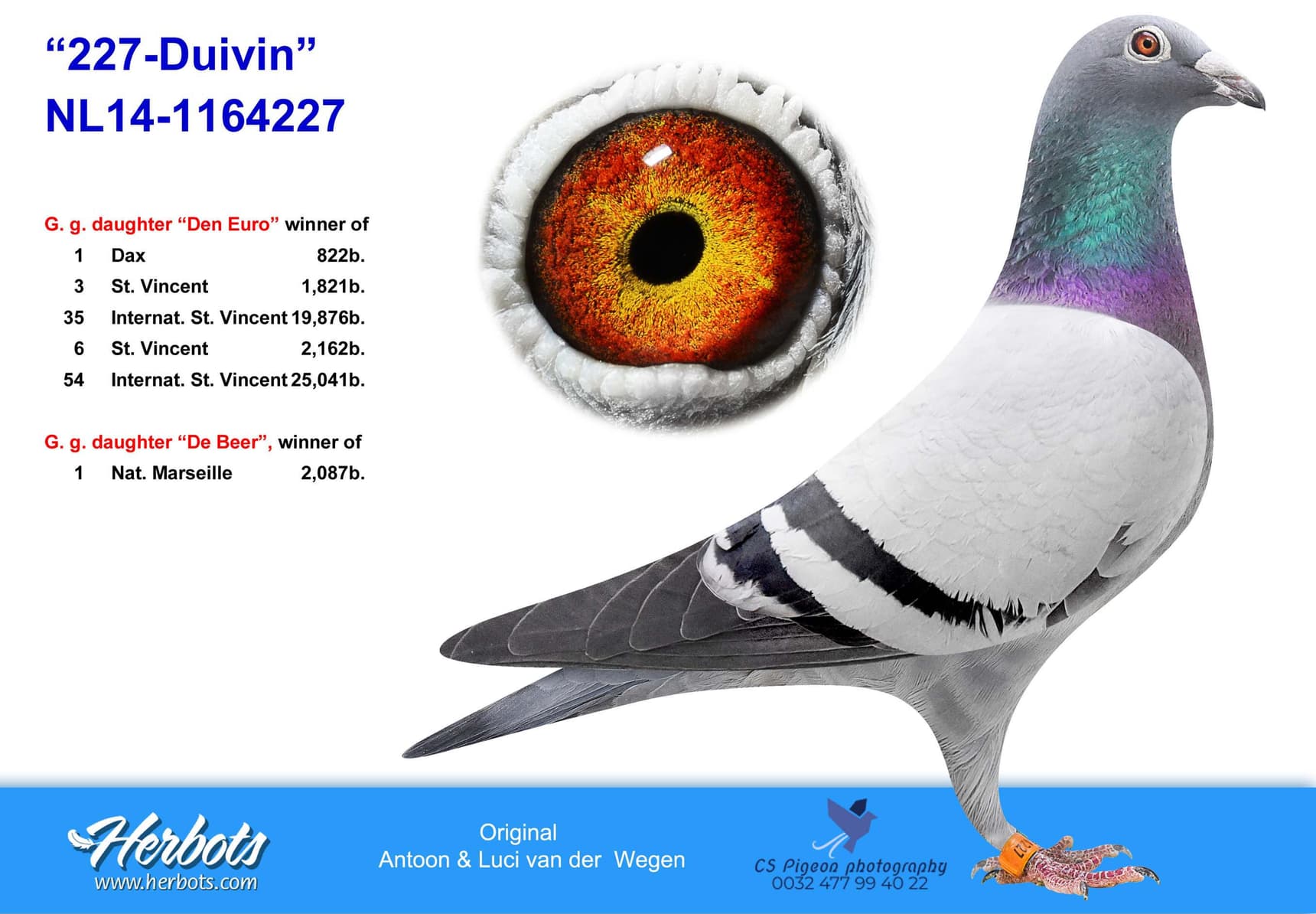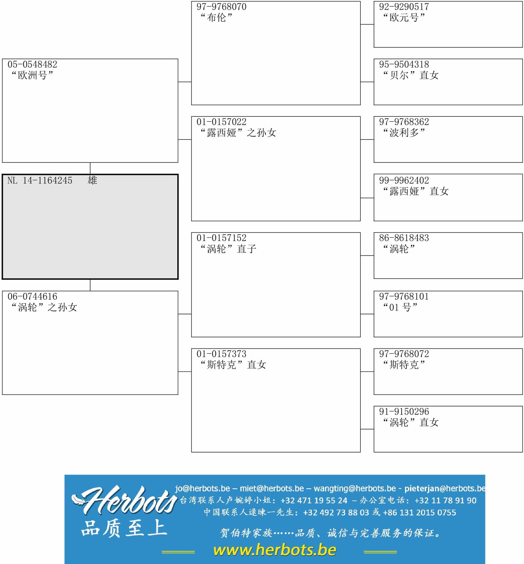 作育者: 100% VAN DER WEGEN A. & L. 100% 纯范德维根血系