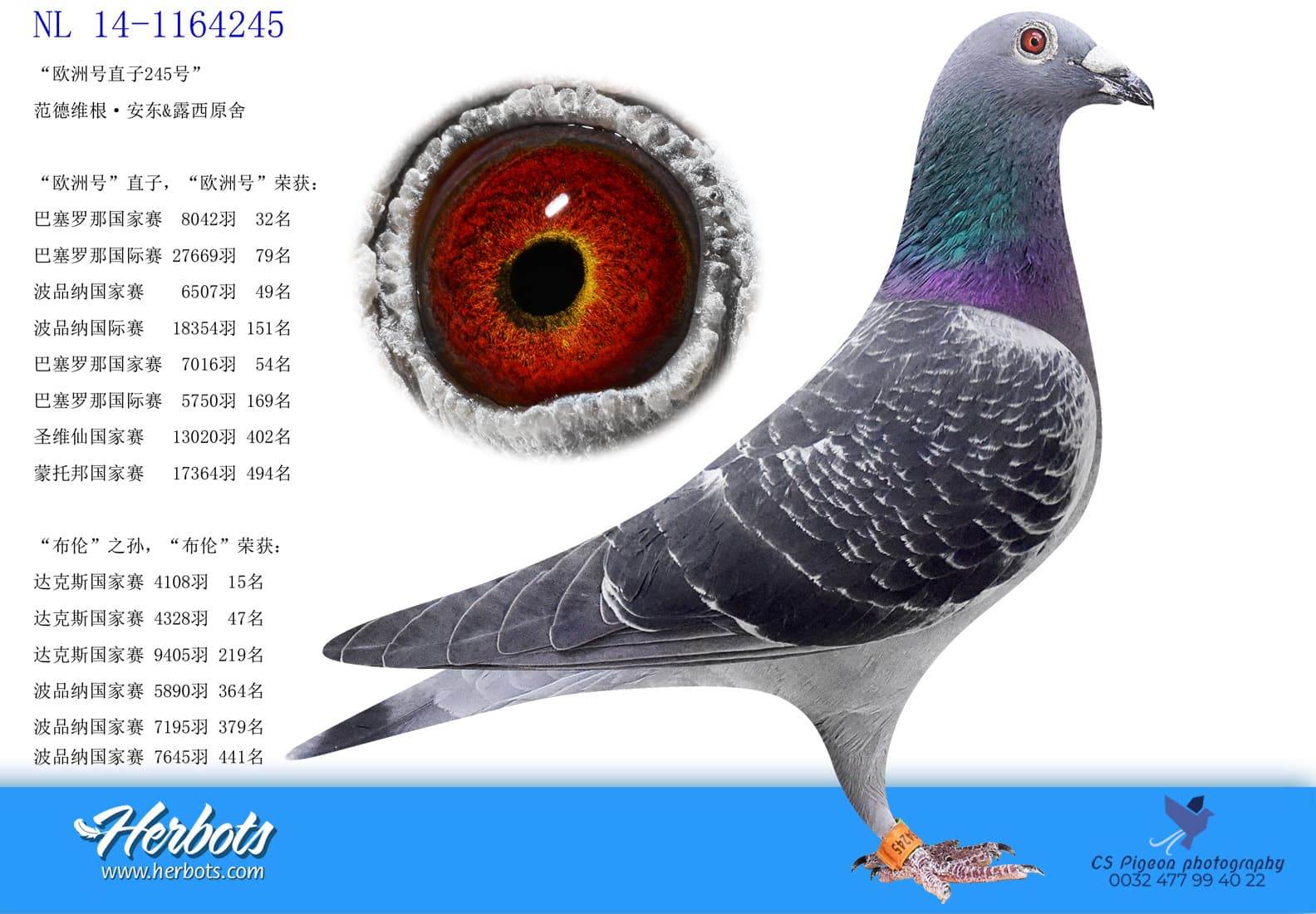 其父“欧洲号”荣获: 巴塞罗那国家赛 8,042羽