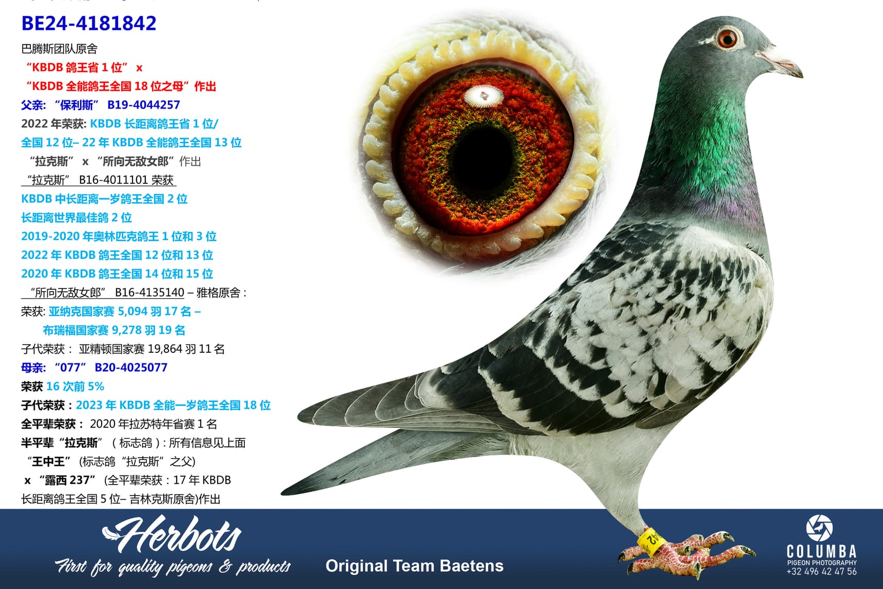 TEAM BAETENS“22/23年PIPA排名利蒙治最佳鸽2位” x “2023年KBDB中长距离一岁鸽王全国17位”作出