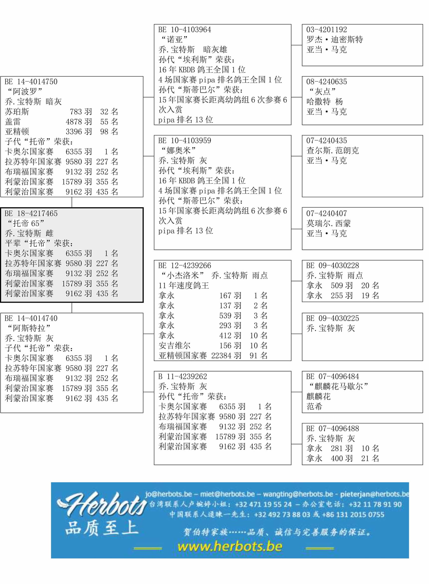 全平辈“托帝”荣获: 卡奥尔国家赛 6,355羽1名 – 拉苏特年国家赛 9,580羽227名– 布瑞福国家赛 9,132羽252名 – 利蒙治国家赛 15,789羽355名– 利蒙治国家赛 9,162羽435名