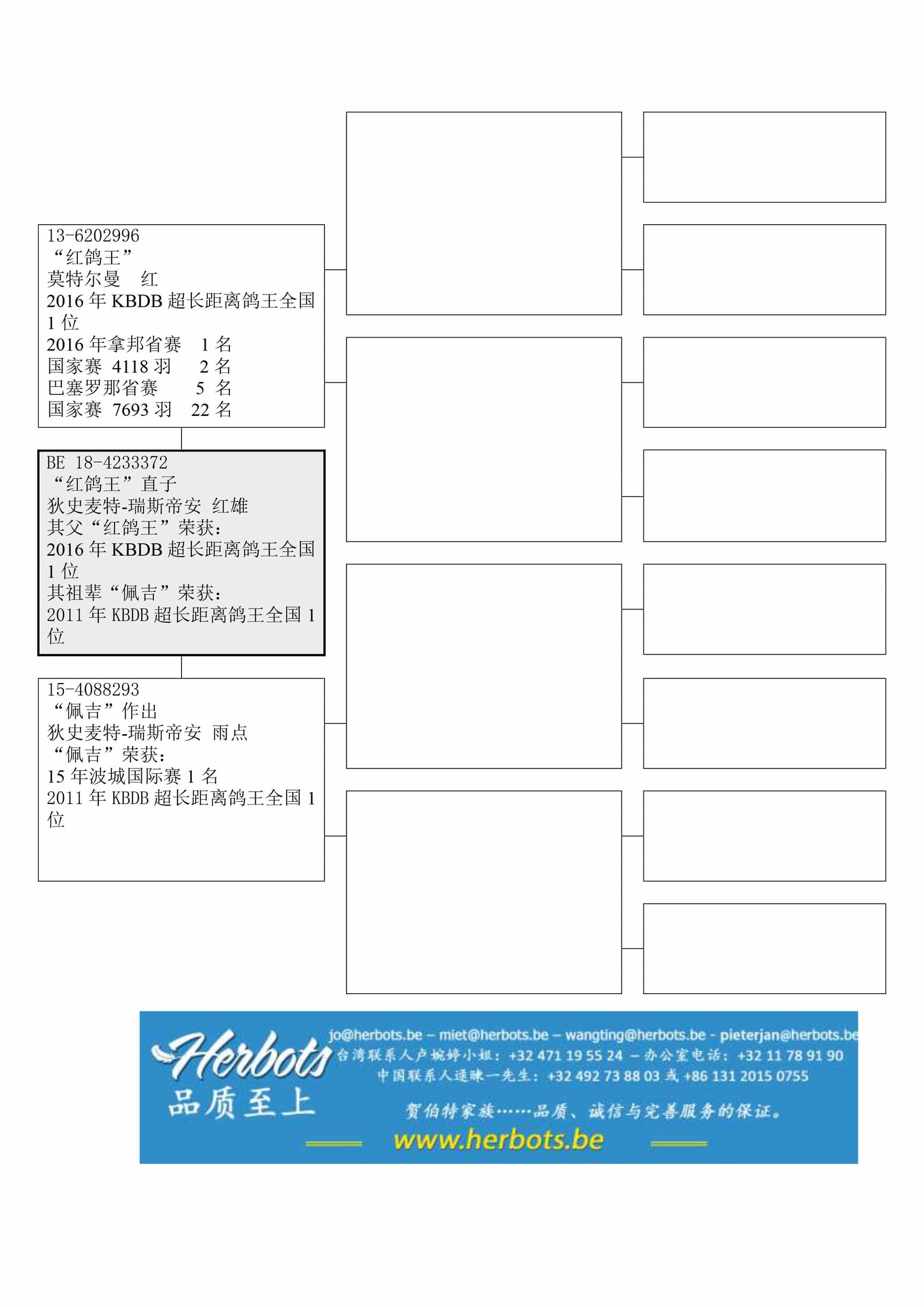 其父“红鸽王”荣获:2016年KBDB马拉松鸽王全国1位其祖辈“卡斯”荣获:15年波城国际赛1名其祖辈“佩吉”荣获:2011年KBDB马拉松鸽王全国1位