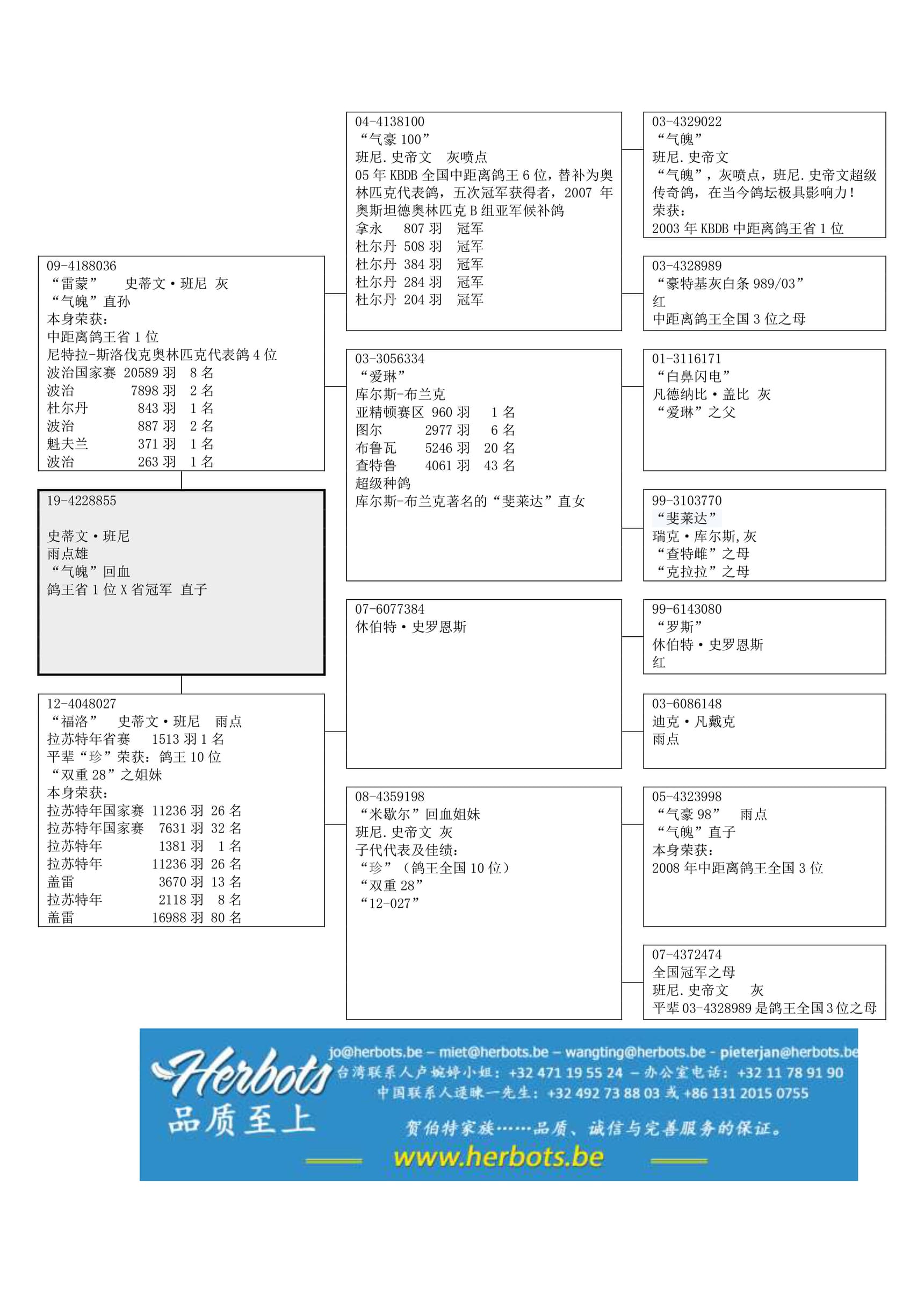 其父 “雷蒙”荣获:KBDB中距离鸽王省1位 – 尼特拉奥林匹克代表鸽4位 – 波治国家赛 20,589羽8名