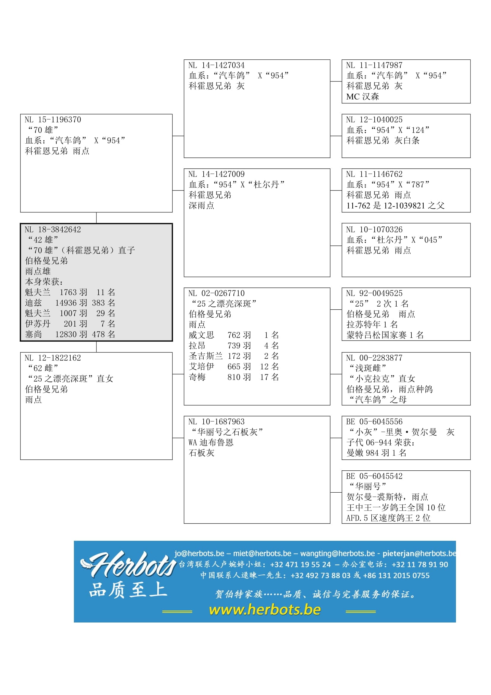 “小灰” (贺尔曼-裘斯特) x “华丽号” (王中王一岁鸽王全国10位)直女
