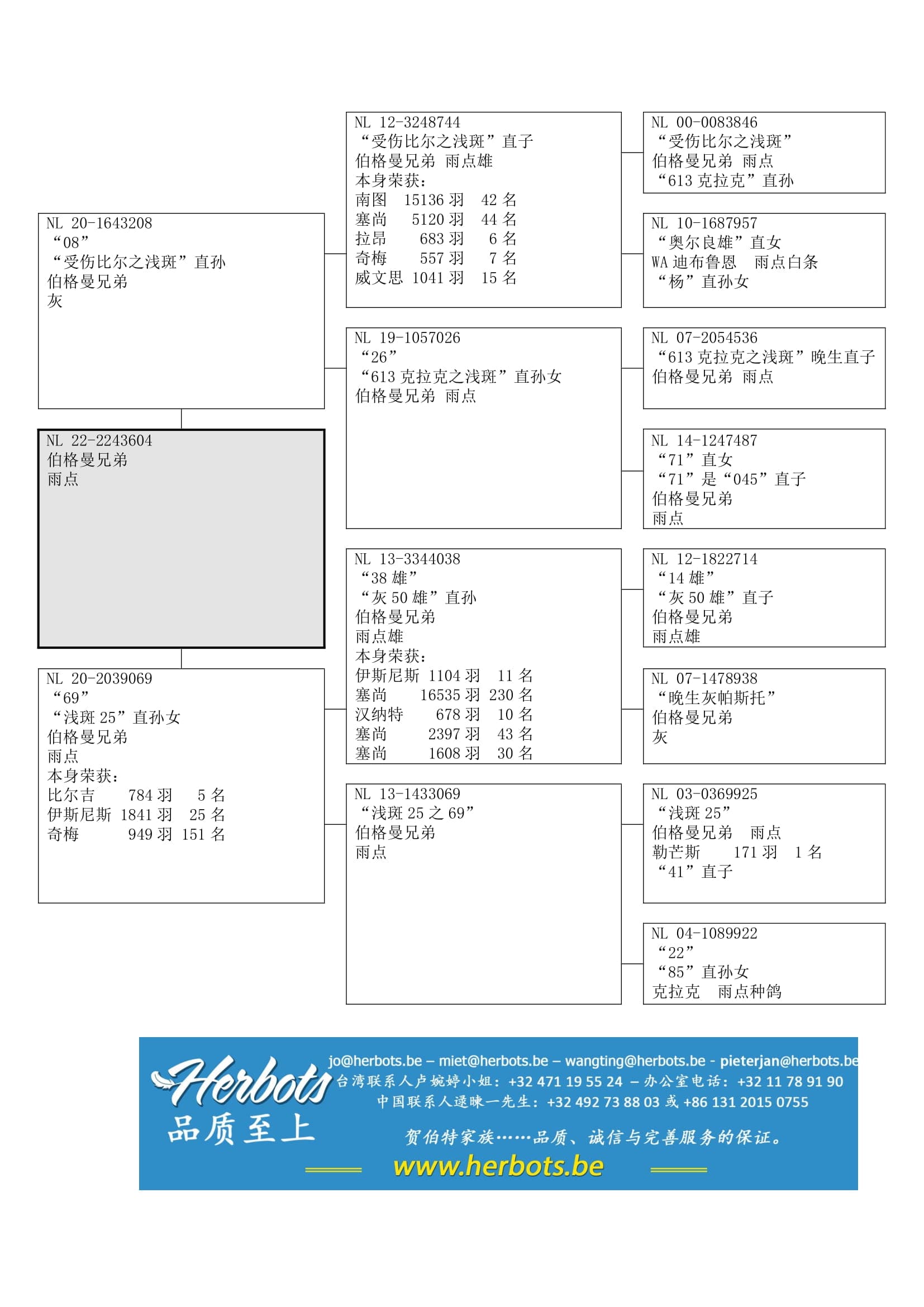 “NL13-3344038” (“灰50雄”X“胖雄直孙女深斑号”直孙,“灰50雄”是“灰613”直孙 ) x “浅斑25之69” (NL13-1433069)作出