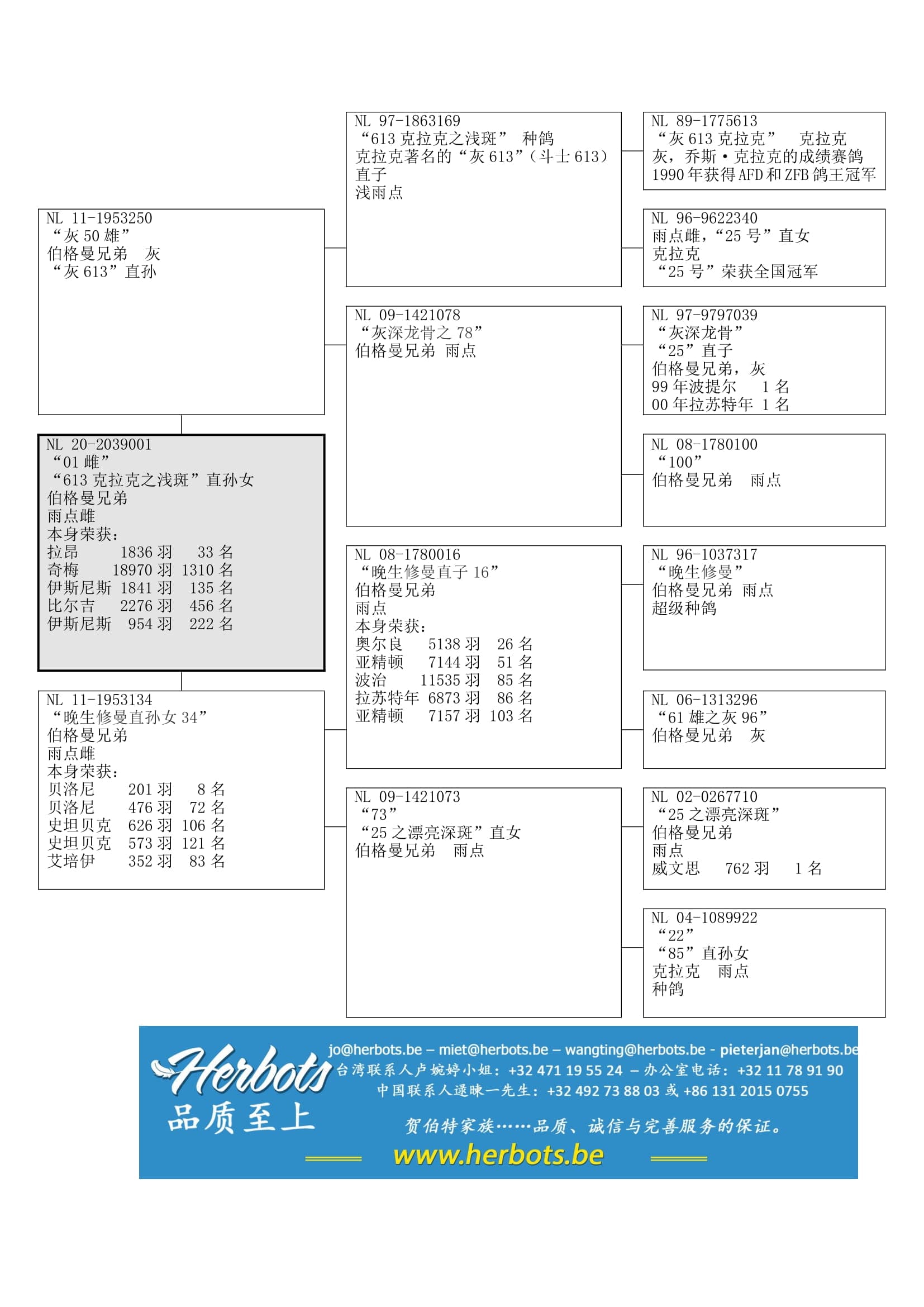 其父“晚生修曼直子16”荣获:奥尔良 5,138羽26名 – 亚精顿 7,144羽51名 – 波治11,535羽85名 – 拉苏特年 6,873羽86名