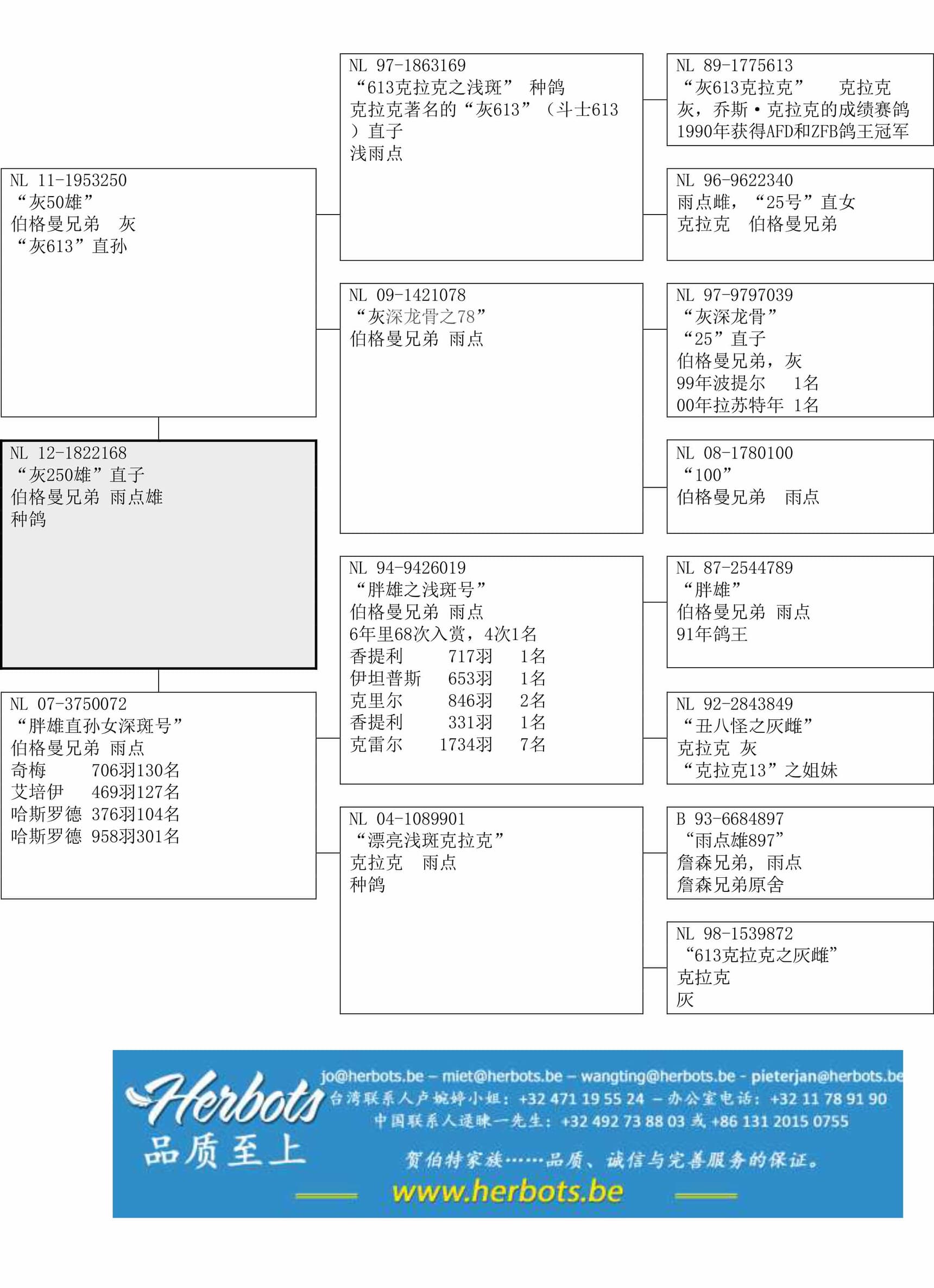 其祖辈“胖雄之浅斑号”荣获:4年里68次入赏 – 香提利 717羽1名 – 伊坦普斯 653羽1名 – 香提利 331羽1名 – 克里尔 846羽2名 – 克里尔 1,734羽7名