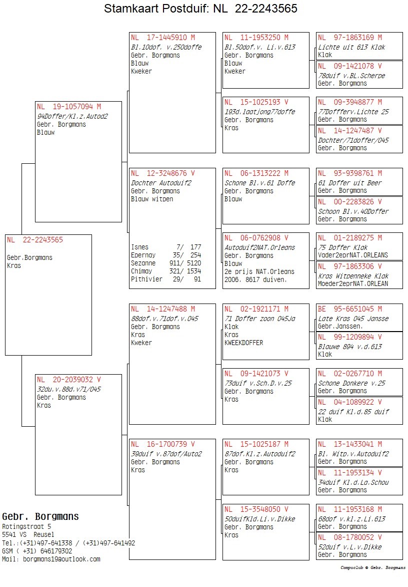 其祖辈“25之漂亮深斑”荣获:威文思 762羽1名 – 圣吉斯兰 172羽2名 - 拉昂 739羽4名