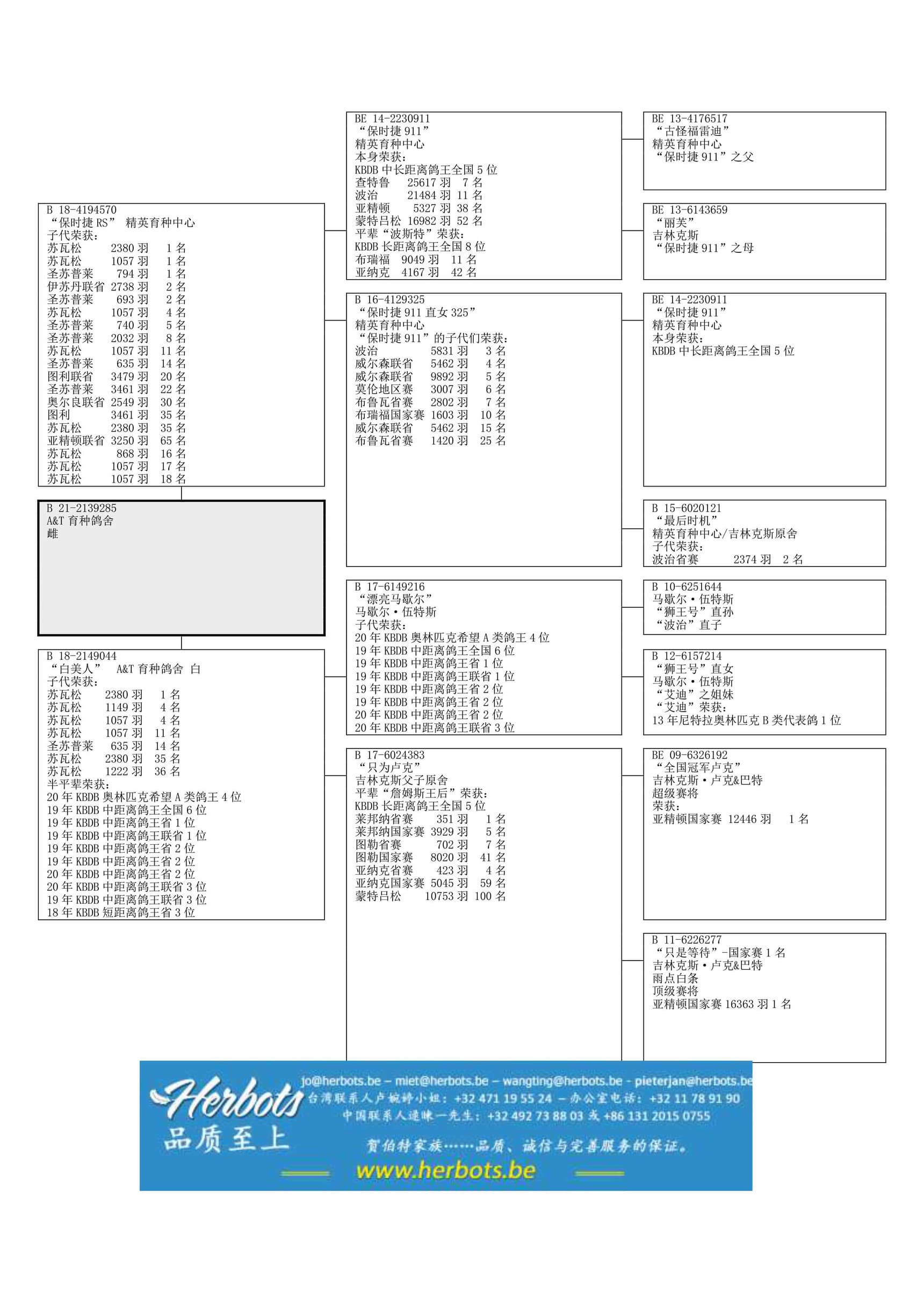 半平辈荣获:20年奥林匹克鸽王4位 – 19年KBDB中距离鸽王省1位/全国6位 – 19年和20年KBDB中距离鸽王省2位