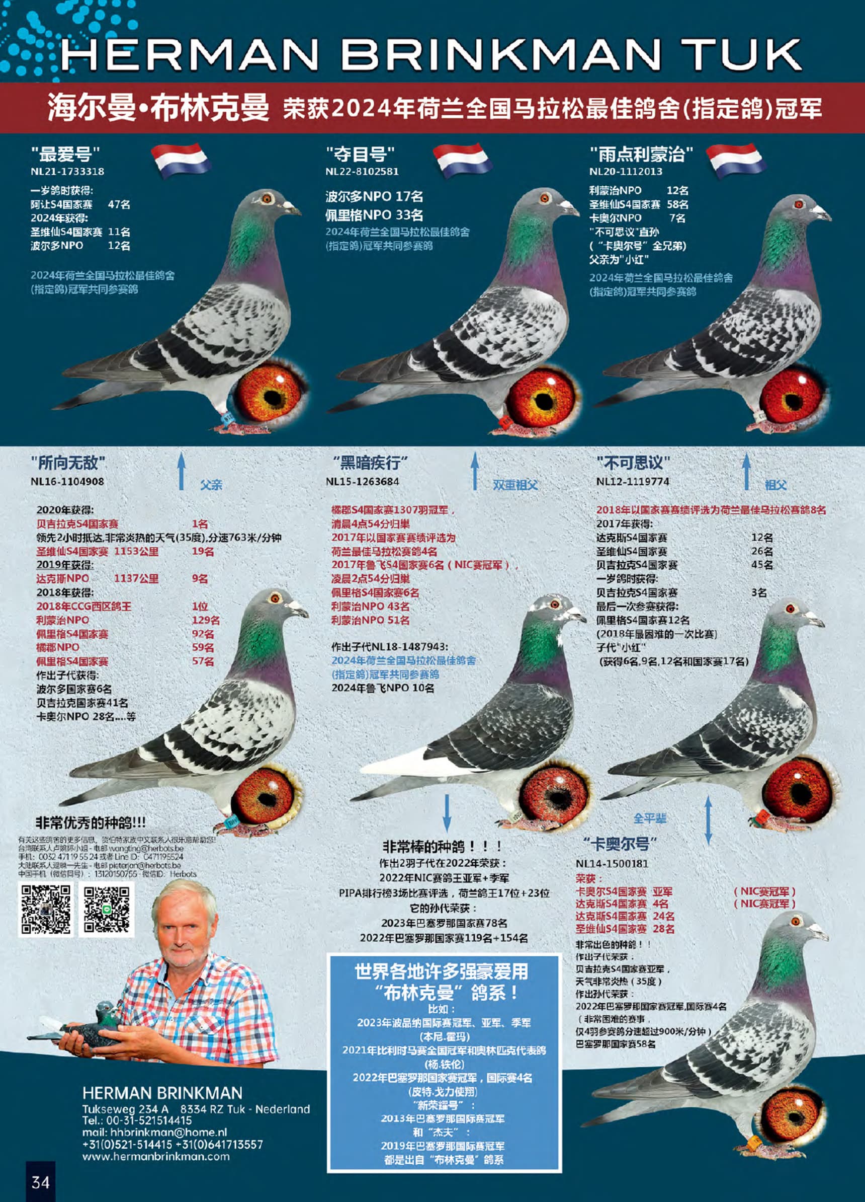 2018年荣获: NIC斯丁威克沃德鸽王1位